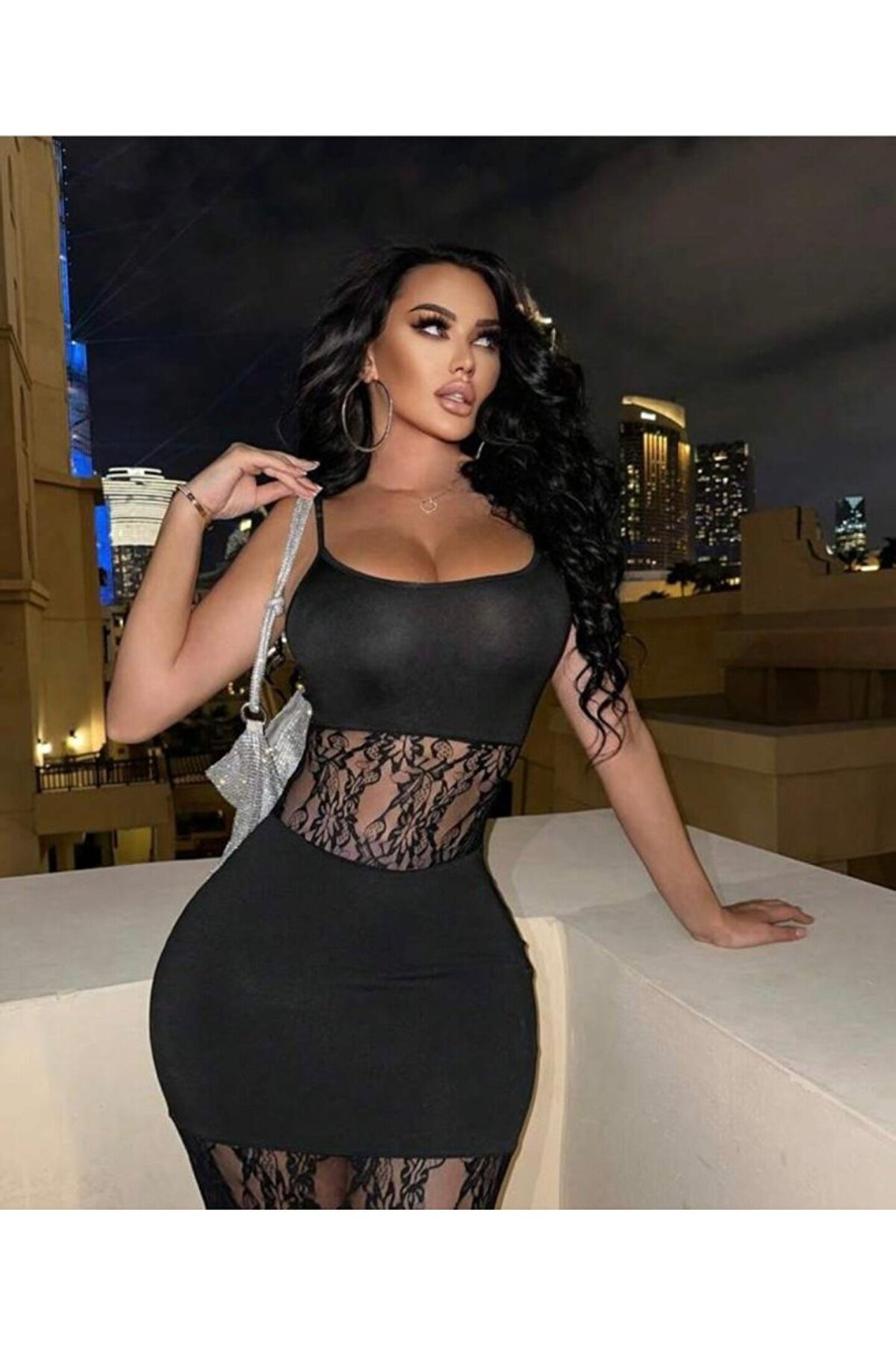 Kadın Dalgıç Kumaş Dantel Detaylı Maxi Boy Elbise