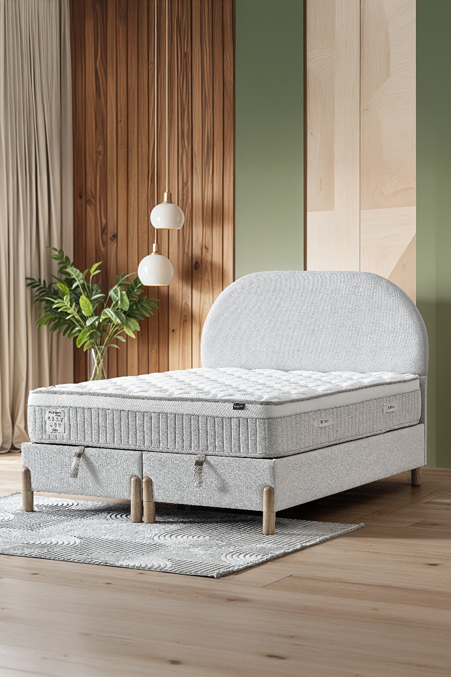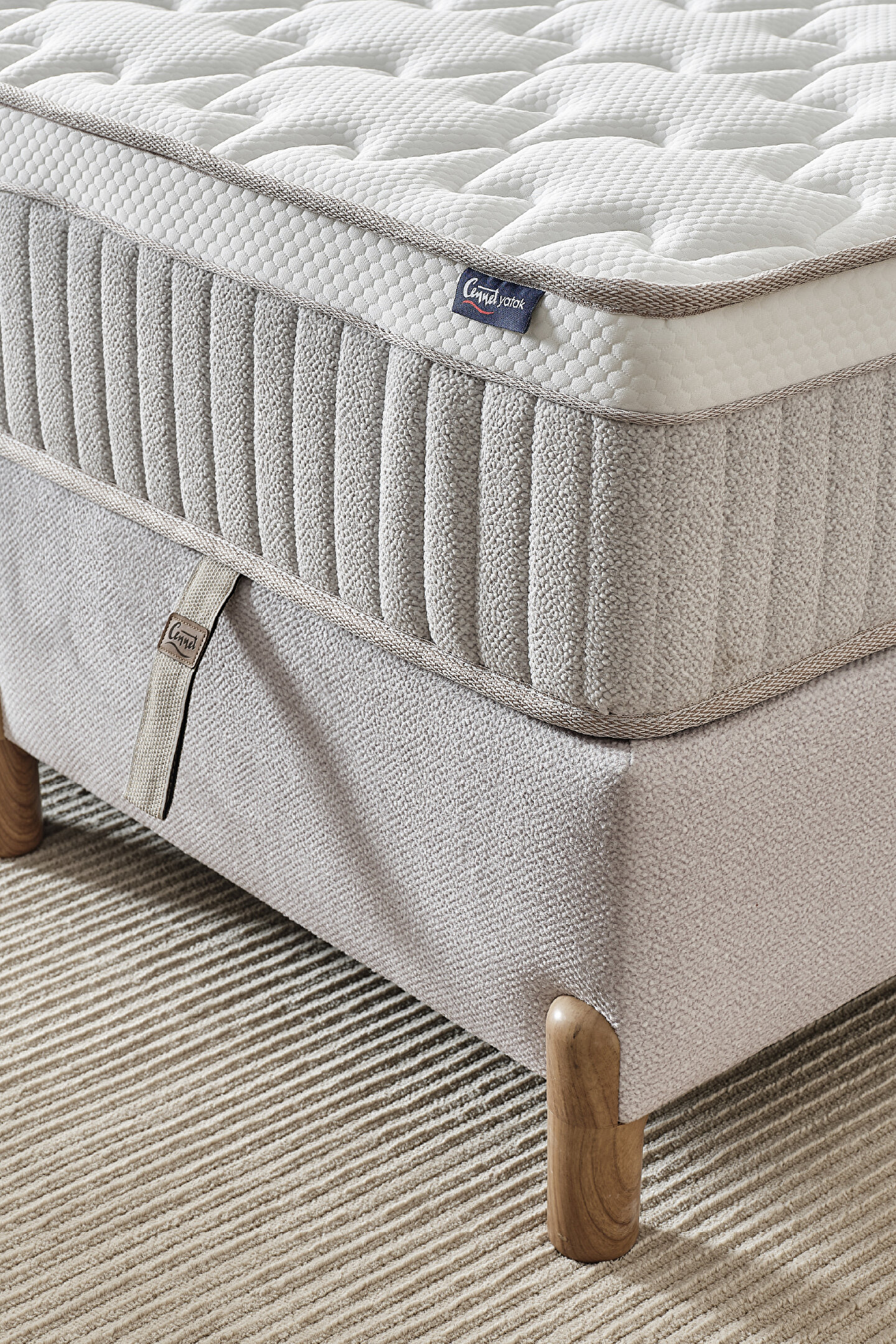 CENNET YATAK Bohem Plus Çift Kişilik Konfor Seti – Pocket Yaylı Yatak + Sandıklı Baza + Başlık