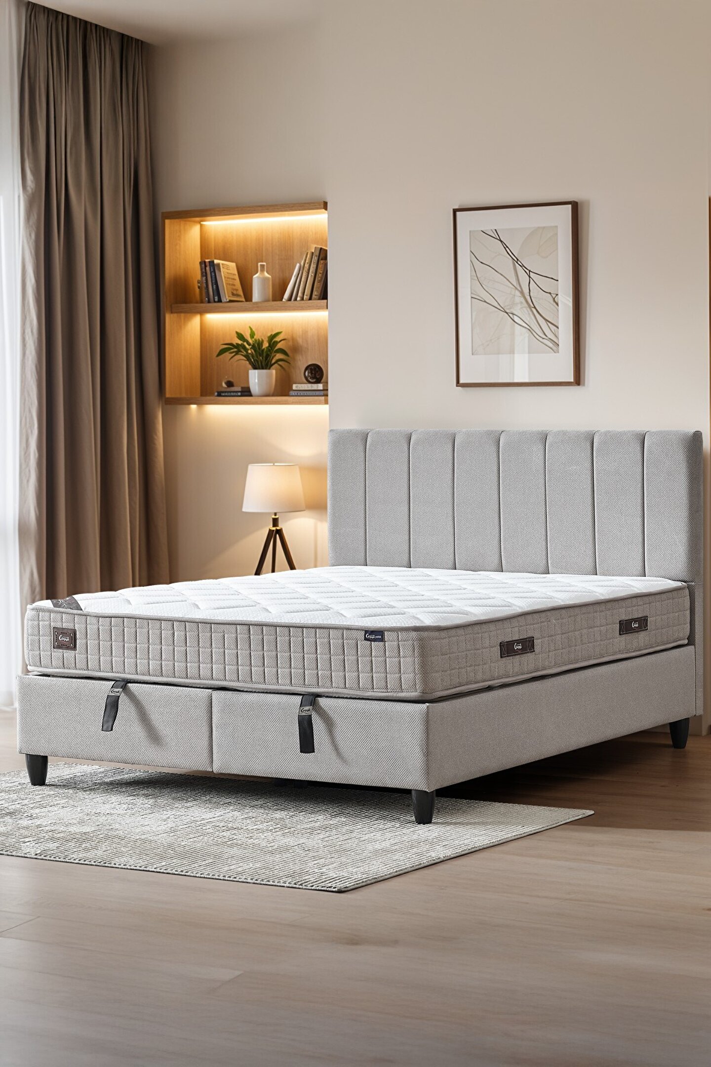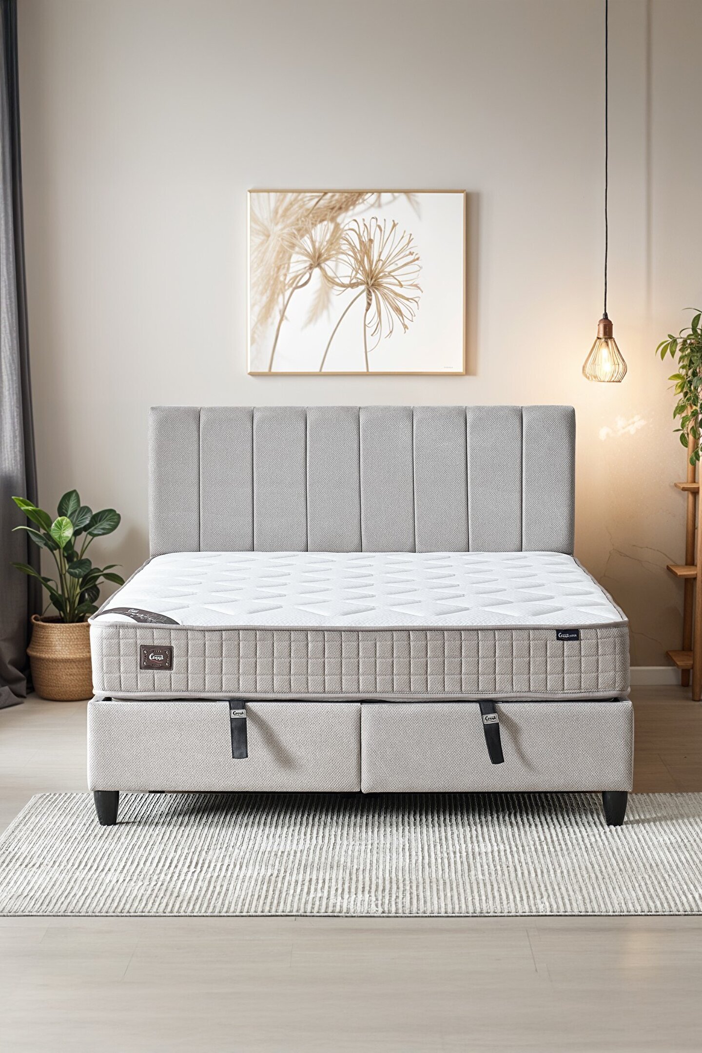 CENNET YATAK Manolya Çift Kişilik Full Ortopedik Antibakteriyel Yatak + Sandıklı Baza + Başlık 3 lü Set