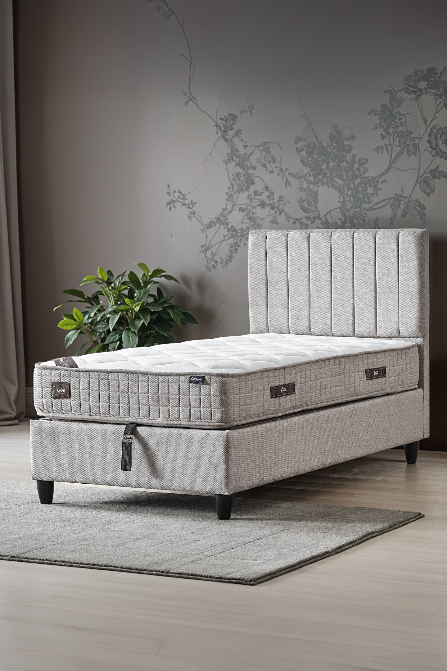 Tek Kişilik Manolya Başlık & Baza Takımı & Yatak 3 lü Set Manolya Başlık Özellikleri Kumaş ve Konfor Kumaş Türü: Dokuma kumaş Özellik: Sünger dolgulu ve kolay silinebilir yapı Ölçüler Yükseklik (Boy): 101 cm Derinlik: 7 cm Manolya Baza Özellikleri Kumaş ve Malzeme Kumaş Türü: Dokuma kumaş Çevresi: Sünger dolgulu, kolay silinebilir yüzey Kapak Kalınlığı: 20x40 mm (TR standartlarında en kalın ölçü) Kapak Üstü : Kaydırmaz Tela Kullanılmıştır Et Kalınlığı: 1 mm Gövde Ölçüsü: 20x30x0.80 mm İskelet: Statik fırınlı boya, çizilmeye karşı ekstra dayanıklı ve markaya özel renkte Teknik Detaylar Baza Tipi: Sandıklı baza Depolama Alanı: 23 cm iç yükseklik Kulp Tipi: Kemer model kumaş kulp Ayak Yüksekliği: 12 cm (robot süpürge uyumlu) Gövde Mekanizması: Metal iskelet + yonga levha Güvenlik ve Dayanıklılık Emniyet: Yüksek güvenlikli emniyet kilidi Kapakta: Anti-Sleep özellikli özel tela Garanti: 2 yıl Manolya Yatak Özellikleri Yay Sistemi – Sessiz Paket Yay Yay: Sessiz paket yay (torba yay) sistemi, konforlu bir uyku deneyimi sunar.; Uyum: Vücut hatlarını takip eden yapı, gece boyunca doğal duruşu destekler.; Destek Katmanları Sünger: 24 DNS destek süngeri, ideal sertlik ve konfor dengesini sağlar.; Sertlik Derecesi : Orta sert Konfor : Full-ortopediktir bu sayede bel ağrılarını minumuma indirir.; Omurga sağlığını destekler Kaplama ve Kumaş Kumaş: Ferahlatıcı etkili, terlemeyi önleyici doğal örme kumaş Yatak Yüksekliği Yükseklik: 22 cm standart ölçü Ekstra Özellikler Kullanım: Çift yönlü destek katmanı, özel hava kanalları sayesinde serin uyku deneyimi Hijyen: kolay temizlenebilir Bilgilendirme : Doktorların tavsiye ettiği yatak modeli Paketleme : Roll Pack şeklinde gönderilmektedir.; Yatağın tam formuna gelmesi 48 - 72 saat arasındadır Nakliye bina önü değil, kapı teslimidir.