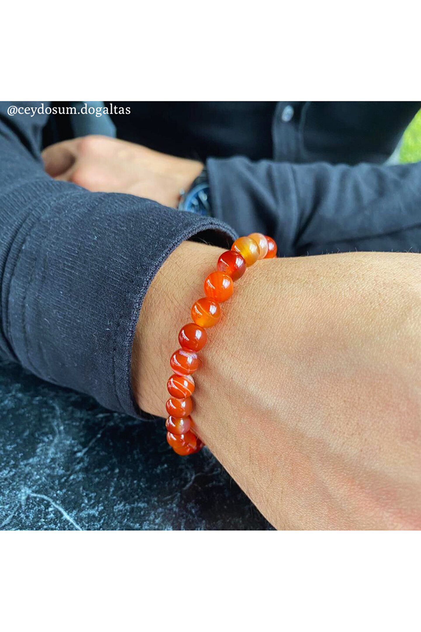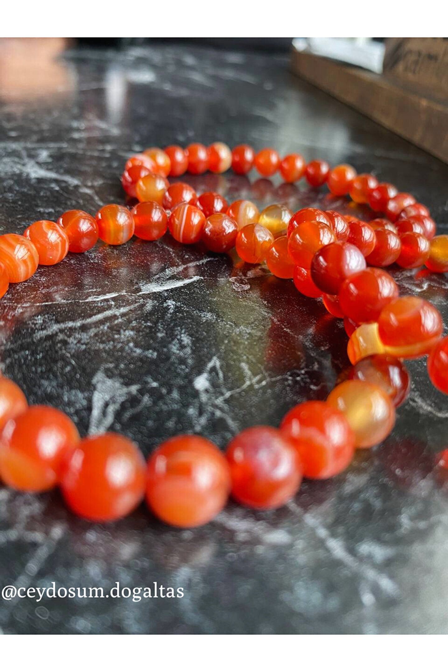 - Doğal akik taşı kullanılarak üretilmiş, şık ve zarif bir tasarıma sahip; - Nazar ve stres gibi olumsuz enerjilere karşı koruyucu özelliği ile günlük kullanım için ideal; - El yapımı ve özgün tasarımıyla dikkat çeken bu bileklik, her kıyafetle uyum sağlar; - Doğal taş materyali sayesinde her bilek boyutuna rahatça uyum sağlar ve konforlu bir kullanım sunar;