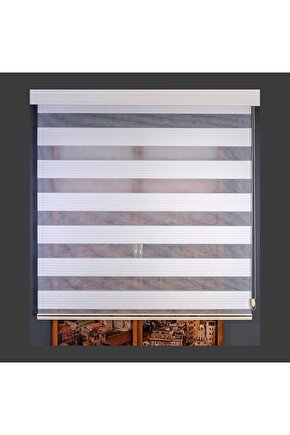 CEYHAN STORE Beyaz Geniş Plise Zebra Stor Güneşlik Perde