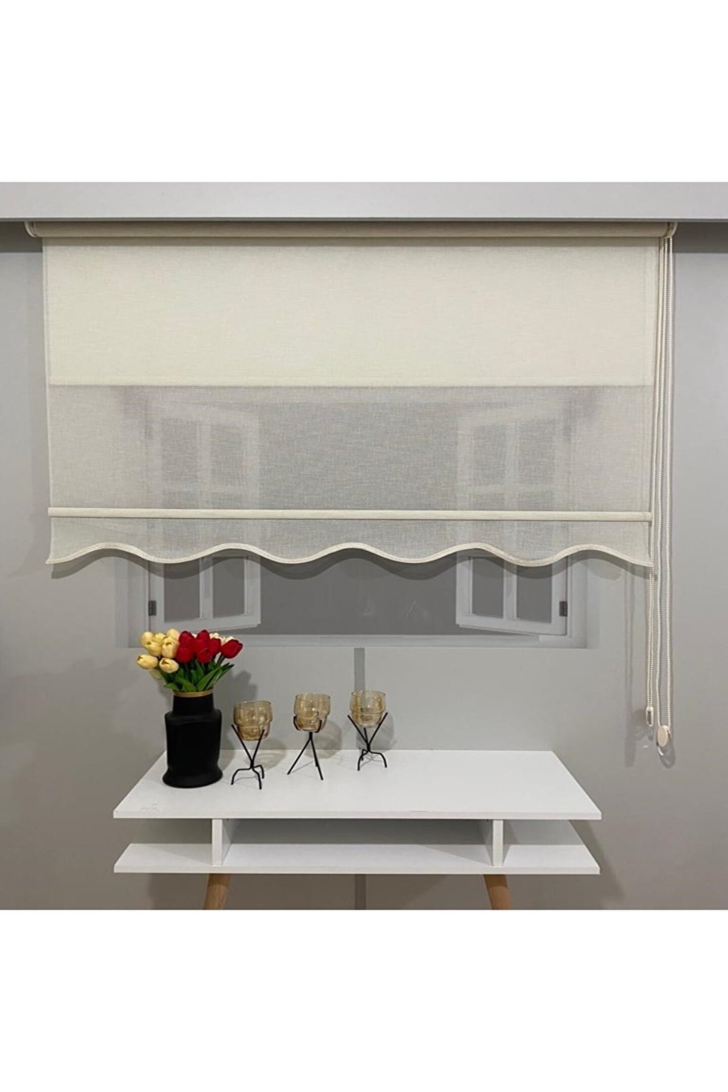 CEYHAN STORE Çift Mekanizmalı Tül Stor Perde Beyaz Naturel Keten