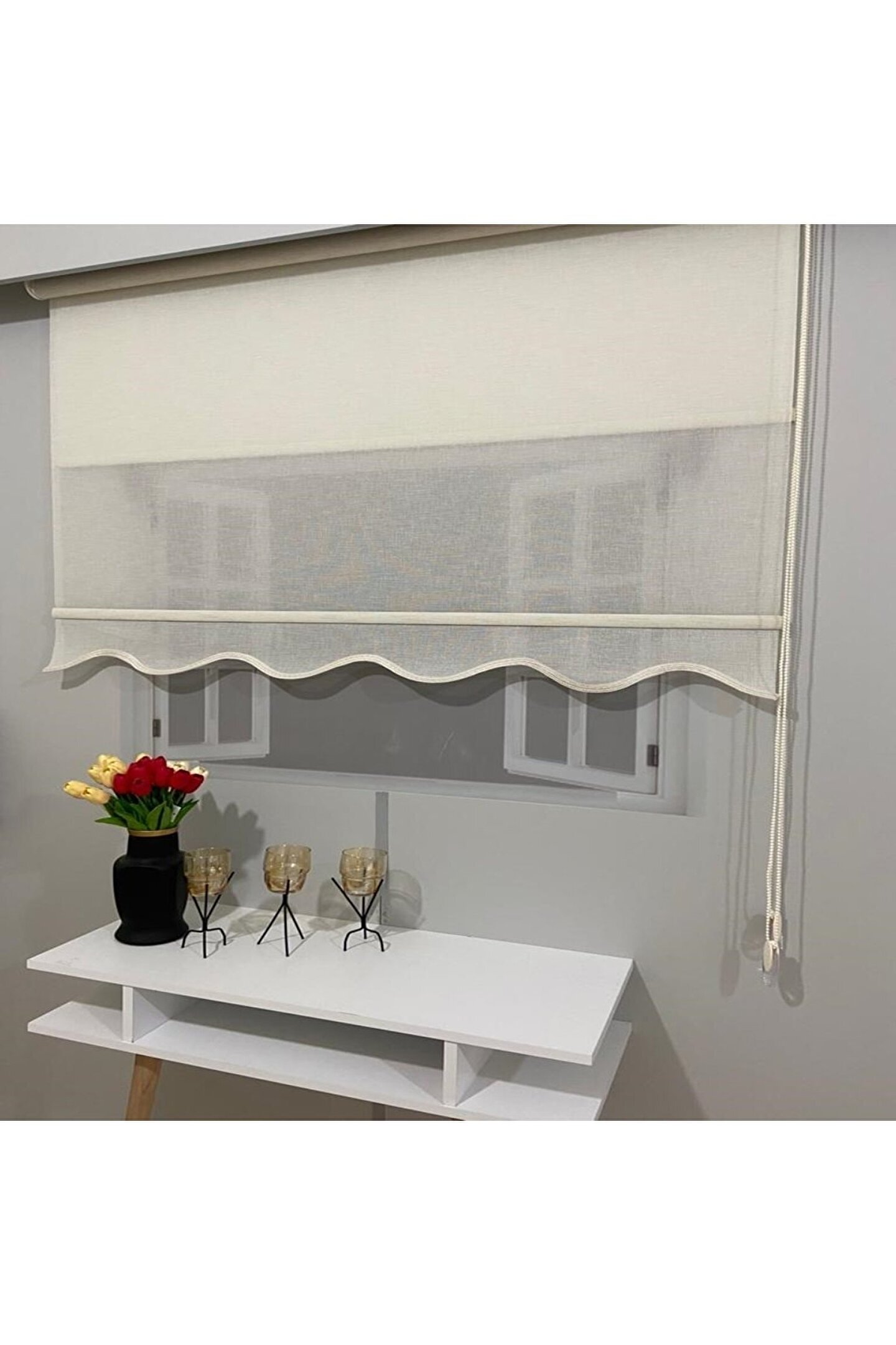 CEYHAN STORE Çift Mekanizmalı Tül Stor Perde Beyaz Naturel Keten