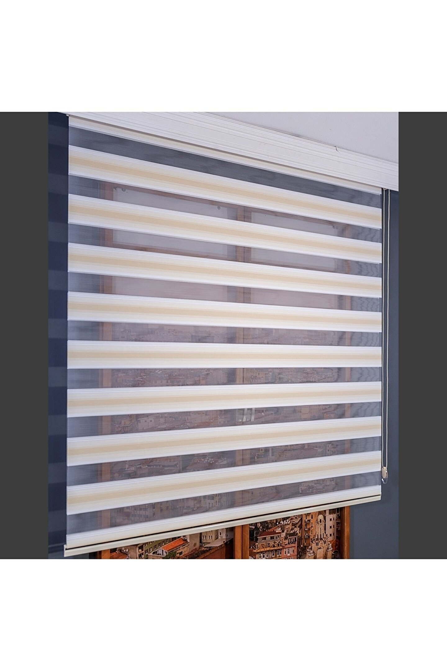 CEYHAN STORE Micro Plise Beyaz Kahve Zebra Stor Perde