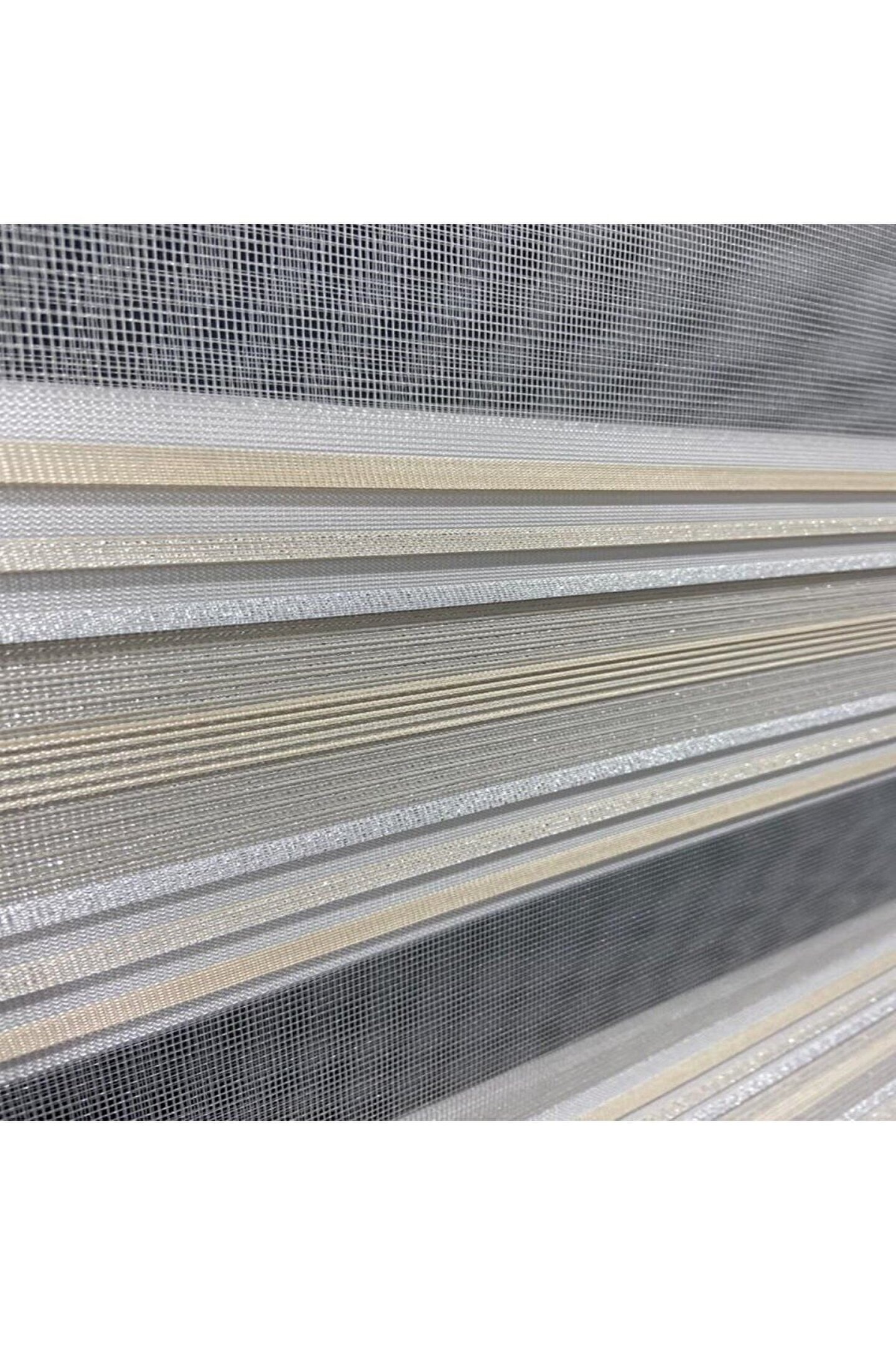 CEYHAN STORE Zebra Stor Perde Krem Gold Simli Lüx Etek Dilimli