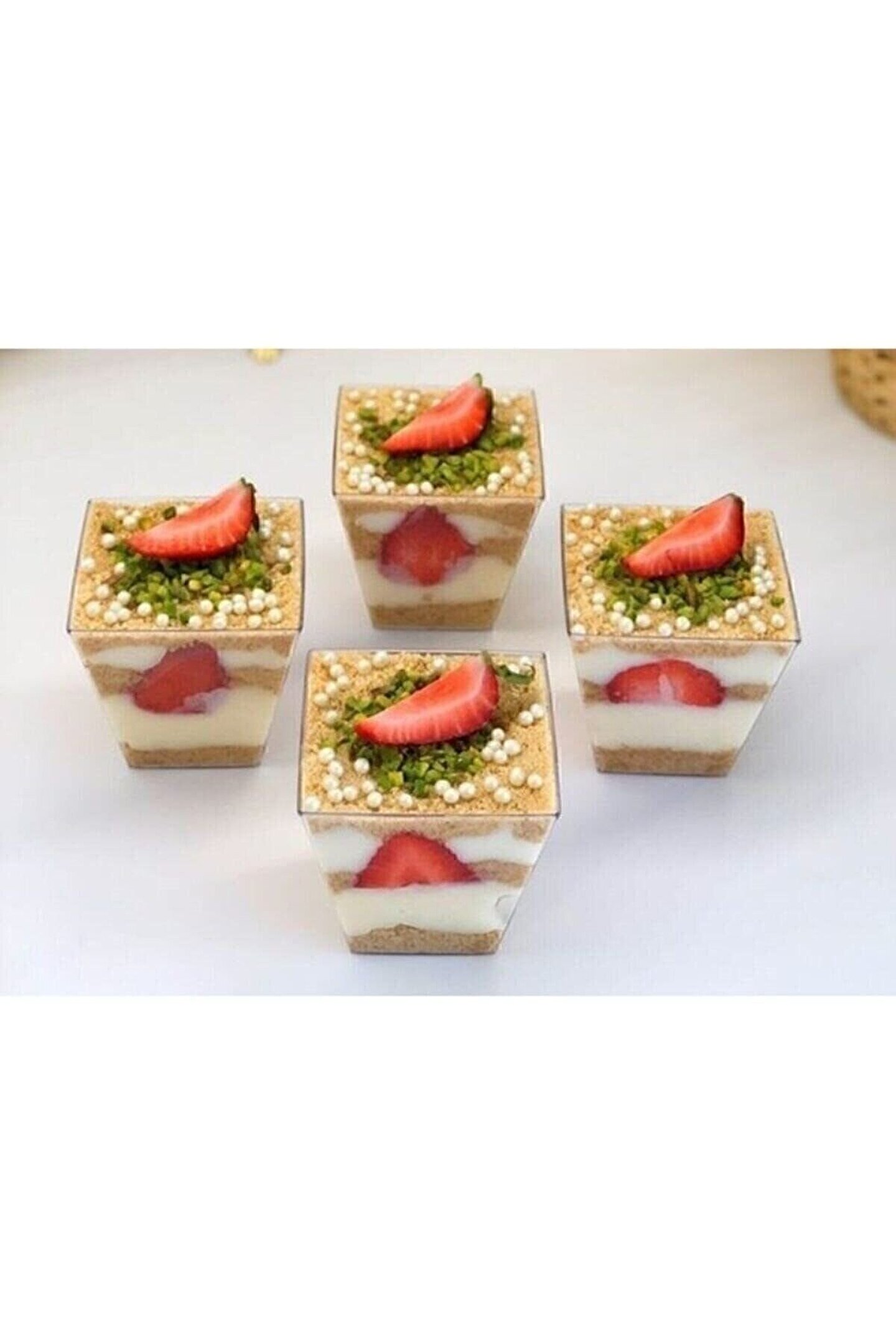 Sert Şeffaf Plastik Akrilik Prizma Kase Salata Çerez Cips Magnolya Tatlı Koymaya Büyük Boy 10 Adet