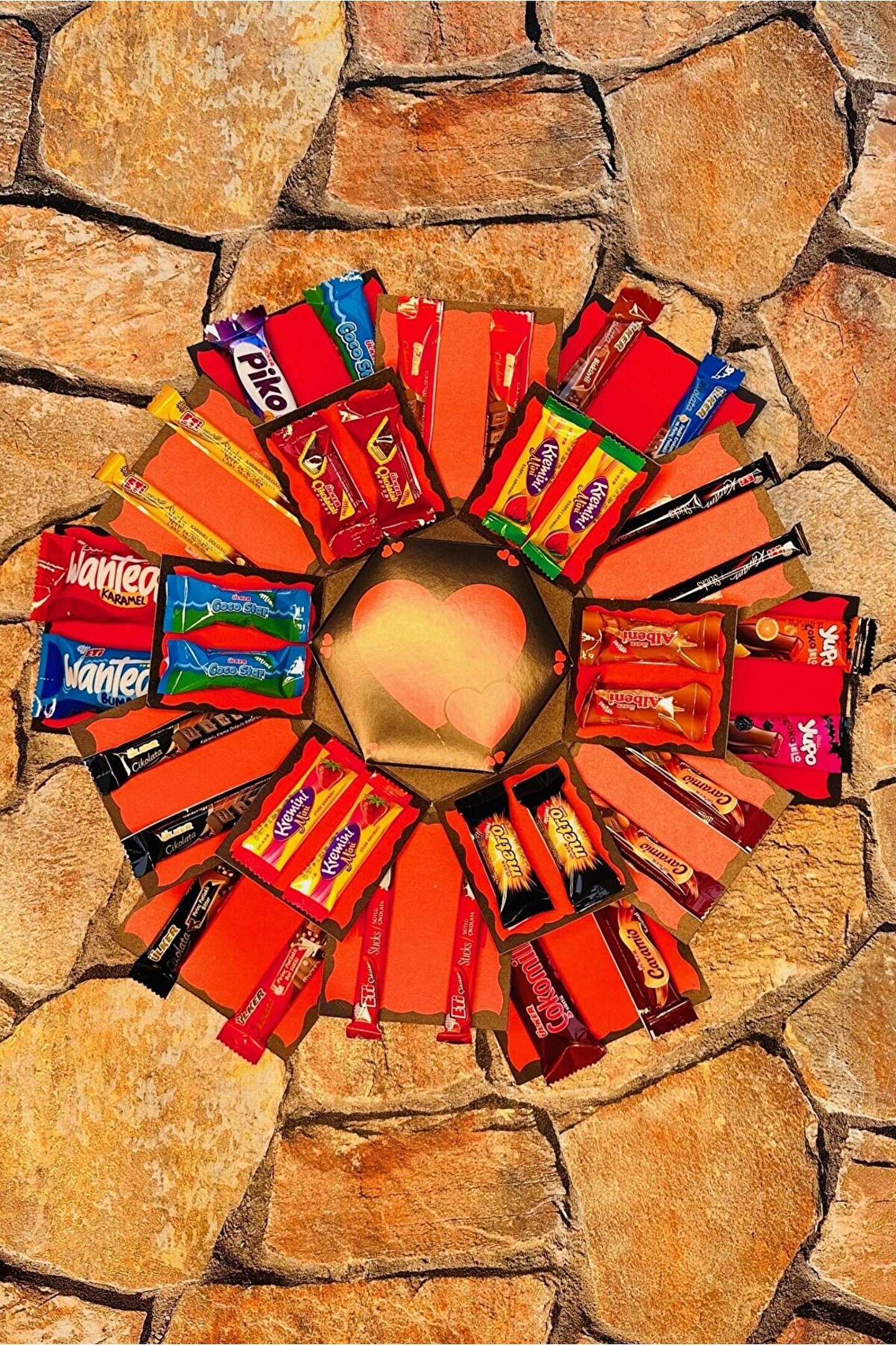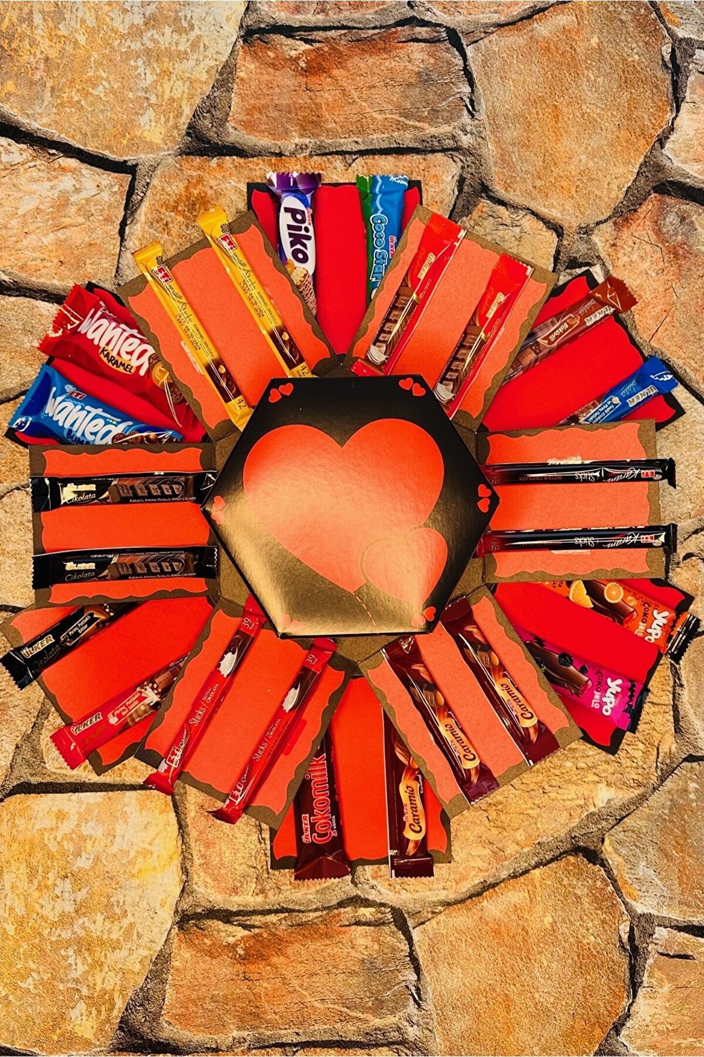 KUTU İÇERİSİNDE 40 ADET ÇİKOLATA BULUNMAKTADIR. ; ÇİKOLATALARIN HEPSİ MARKALI ÇİKOLATALAR OLUP RESİMDE GÖRÜNDÜĞÜ GİBİ GELMEKTEDİR. ; KUTUNUN KAPALI HALİ 22*25*14 CM ALTIGEN ŞEKLİNDEDİR.;