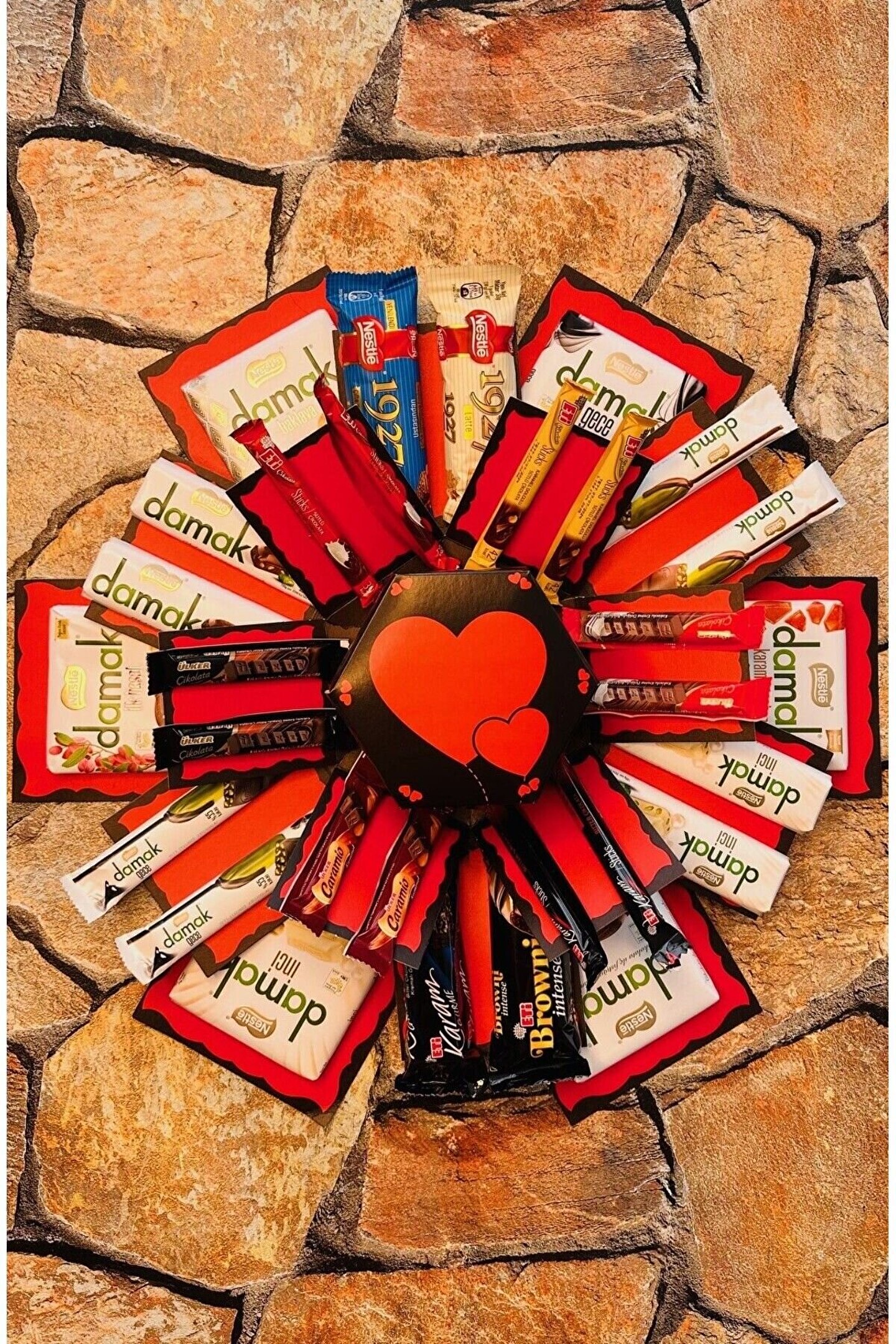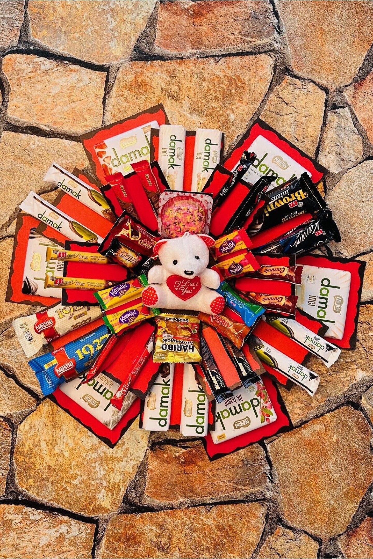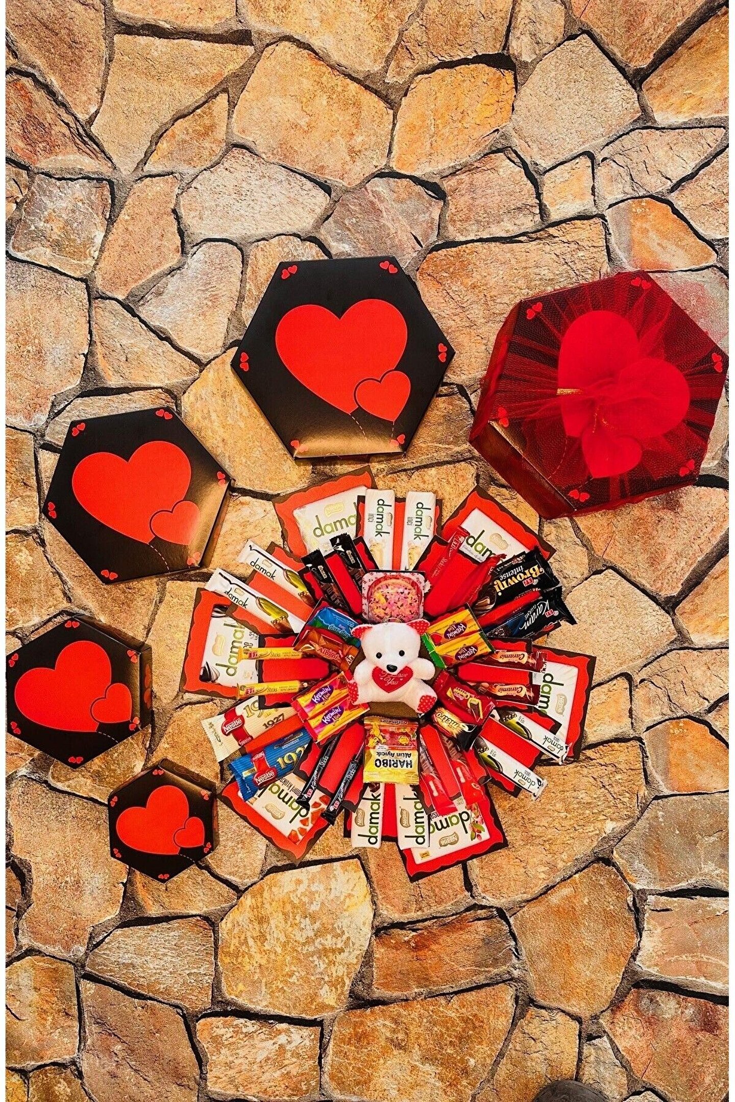 KUTU İÇERİSİNDE 40 ADET ÇİKOLATA VE ORTASINDA PELUŞ OYUNCAK HEDİYEMİZ BULUNMAKTADIR. ; ÇİKOLATALARIN HEPSİ MARKALI ÇİKOLATALAR OLUP RESİMDE GÖRÜNDÜĞÜ GİBİ GELMEKTEDİR. ; HEDİYE OLARAK GÖNDERDİĞİMİZ PELUŞ OYUNCAK DEĞİŞİKLİK GÖSTEREBİLMEKTEDİR. ; KUTUNUN KAPALI HALİ 22*25*14 CM ALTIGEN ŞEKLİNDEDİR.;