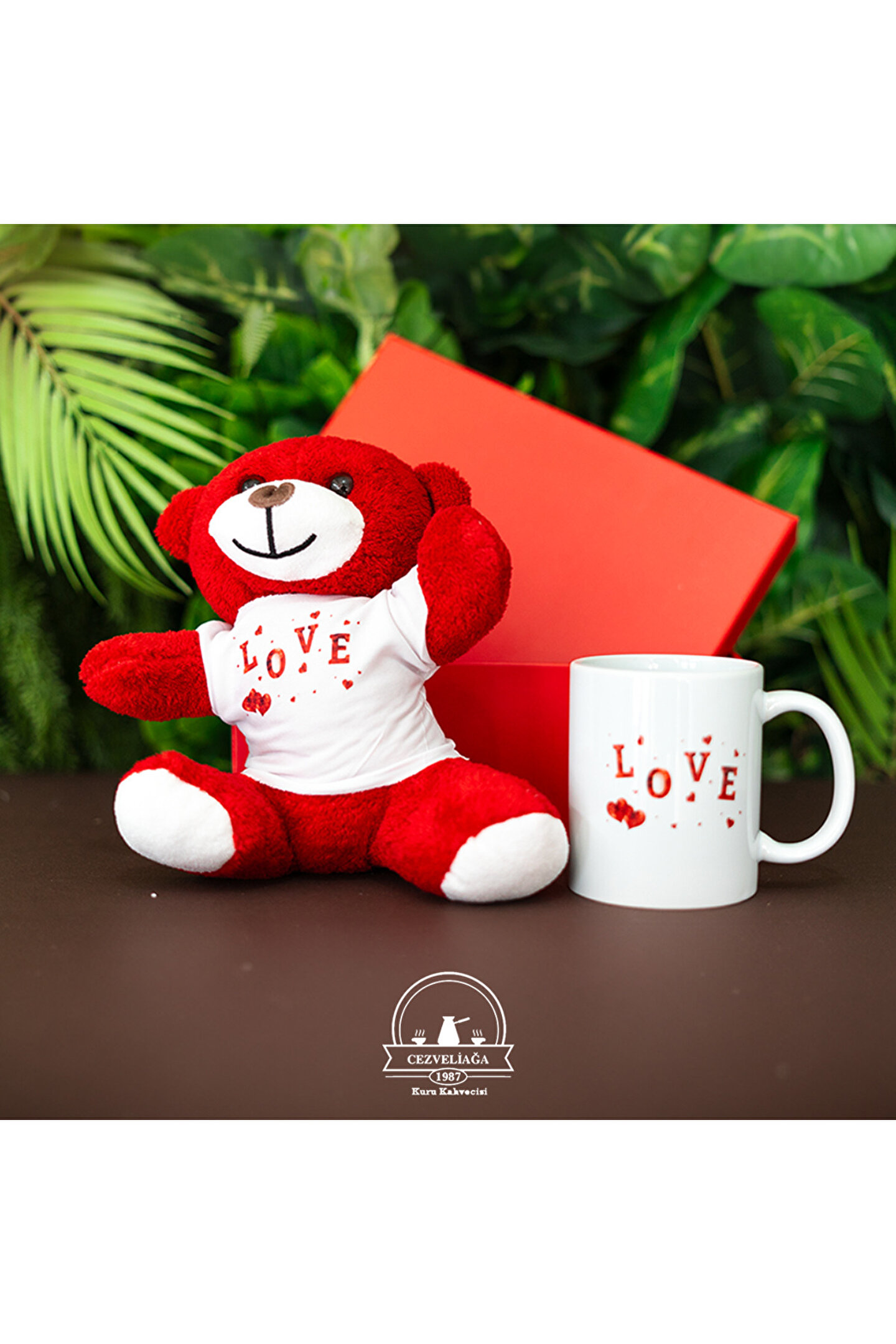 CEZVELİAĞA KURUKAHVECİSİ SEVGİLİLER GÜNÜ SENİ SEVİYORUM KUPA AYICIK KUTU