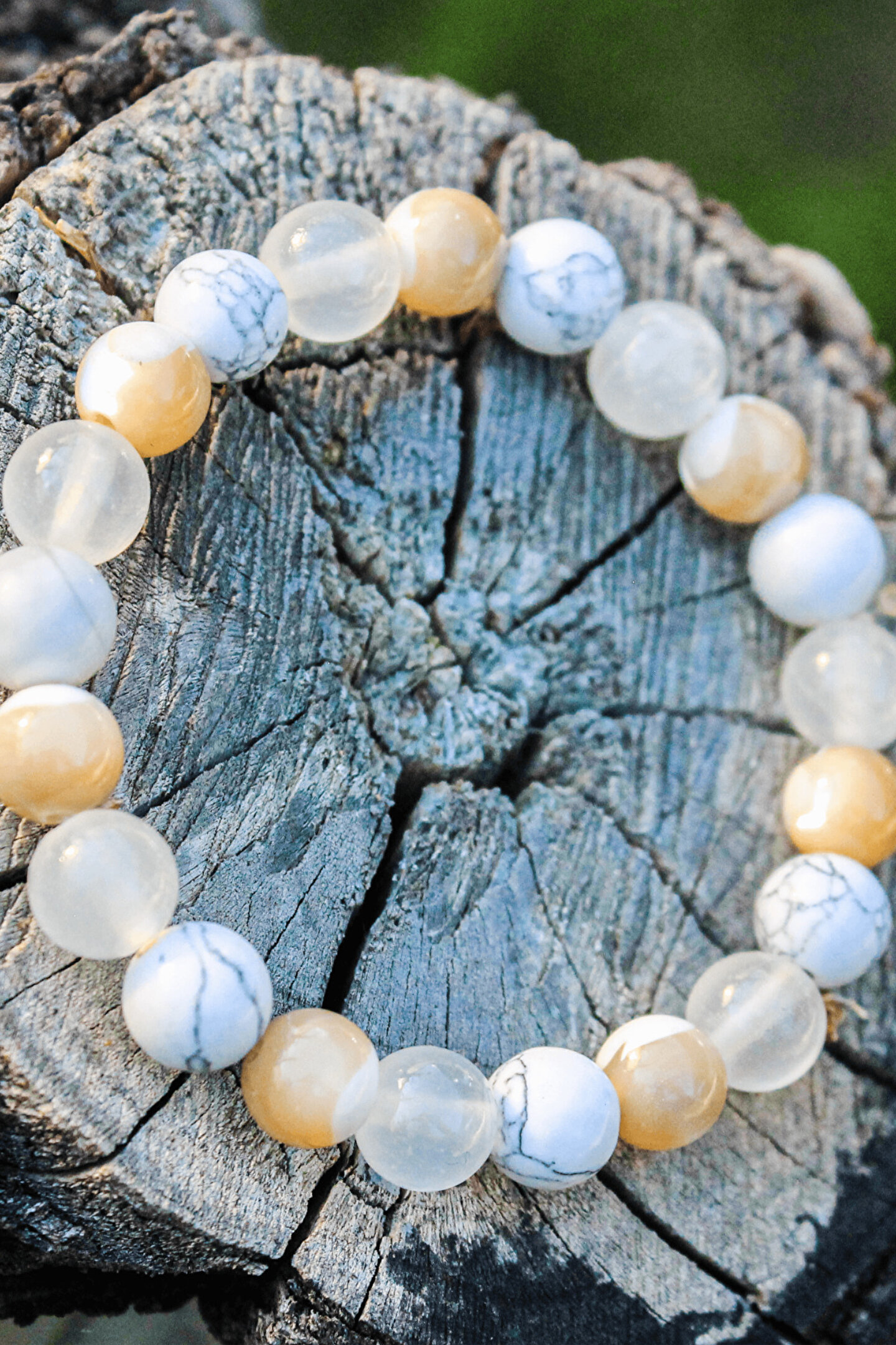- Doğal taş tılsım bileklik, şıklığınızı tamamlayacak zarif bir aksesuardır; - Esmer sedef, selenit ve havlit taşı gibi doğal taşların benzersiz dokusuyla dikkat çeker; - 8mm boyutundaki bu bileklik, hem günlük kullanım hem de özel günler için idealdir; - Chi-zen bileklik olarak bilinen bu tasarım, enerjiyi dengelemeye yardımcı olurken stilinizi de ön plana çıkarır;
