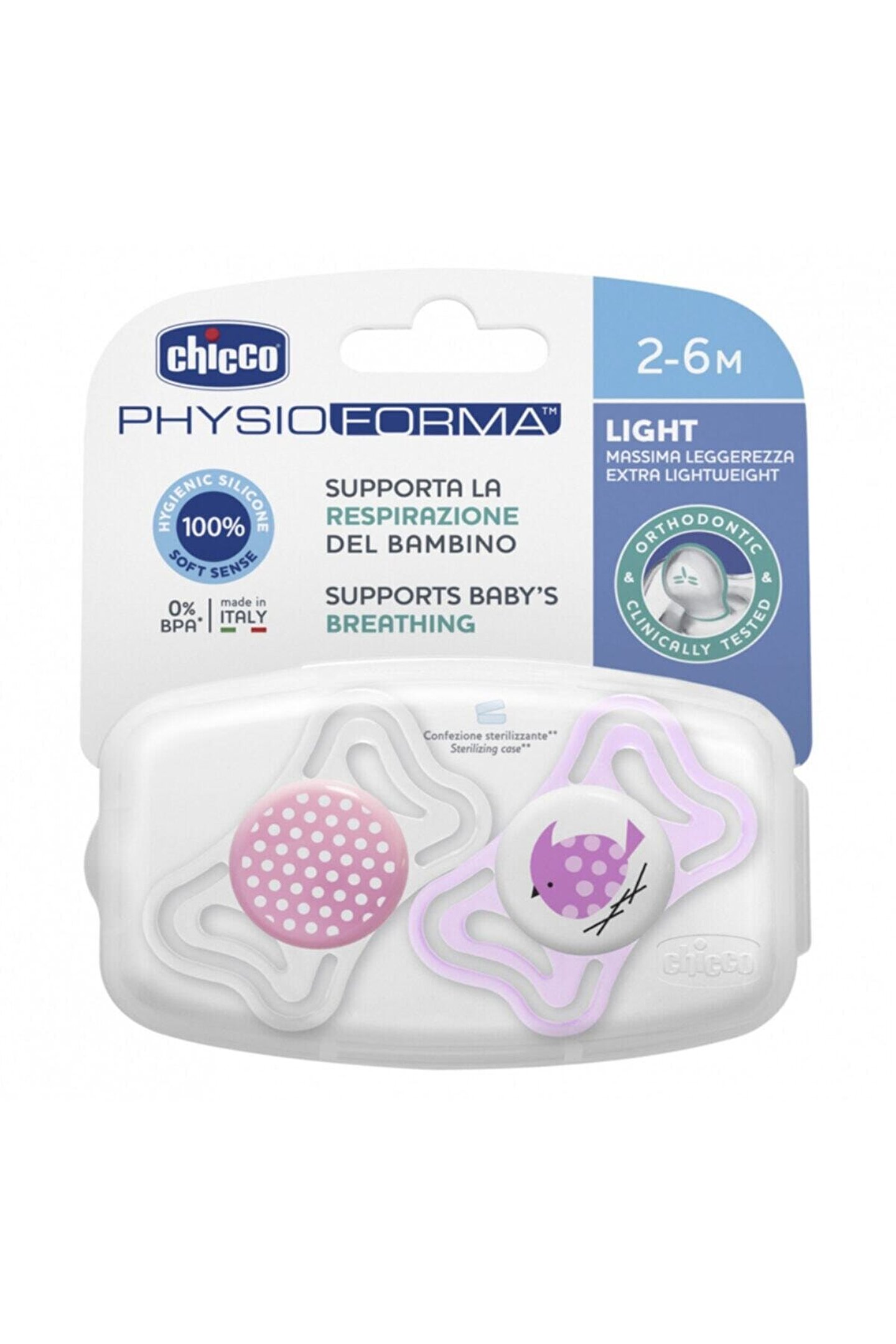 Tüm chicco emzikler physioforma ortodontik uca sahiptir, dilin ağız içindeki doğal pozisyonunu alması için doğru alanı sağlayan özel şekil: Physioforma fizyolojik nefes almayı ve bebeğinizin ağzının doğal gelişimini destekler; Ekstra hafiftir ve hava akışı sağlar: Maksimum hafifliği ve geniş işlevsel havalandırma delikleri sayesinde cilt her zaman kuru ve yumuşak kalır; Ergonomik şekil: Bebeğin burnu ve çenesi için geniş alan bırakan özel hafif tasarımı sayesinde bebeğinizin maksimum konforunu eder; Yeni inovatif tasarımbebeğin yüzünde ekstra hafifliksilikon: Pratikliği için seçilen hijyenik ve deforme olmayan bir malzeme; Özel yapısı emziği yumuşak ve kadifemsi yapar;