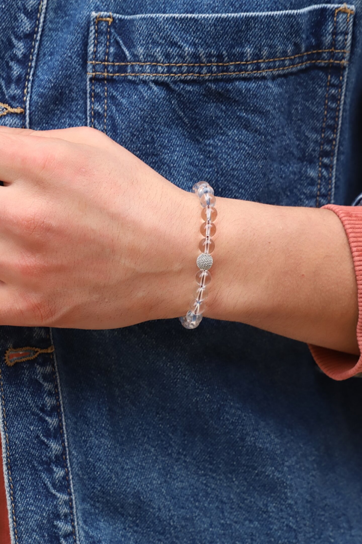 - Doğal taş kullanımı sayesinde her bileklik benzersiz ve otantik bir görünüm sunar; - Kristal kuvars taşı, şıklığı ve zarafeti bir arada barındırarak her kıyafetle uyum sağlar; - Taş materyali, bilekliğin dayanıklılığını artırırken aynı zamanda hafif ve konforlu bir kullanım sunar; - Doğal taşların eşsiz desenleri ve renkleri, her bir bileklikte farklı bir hikaye anlatır;