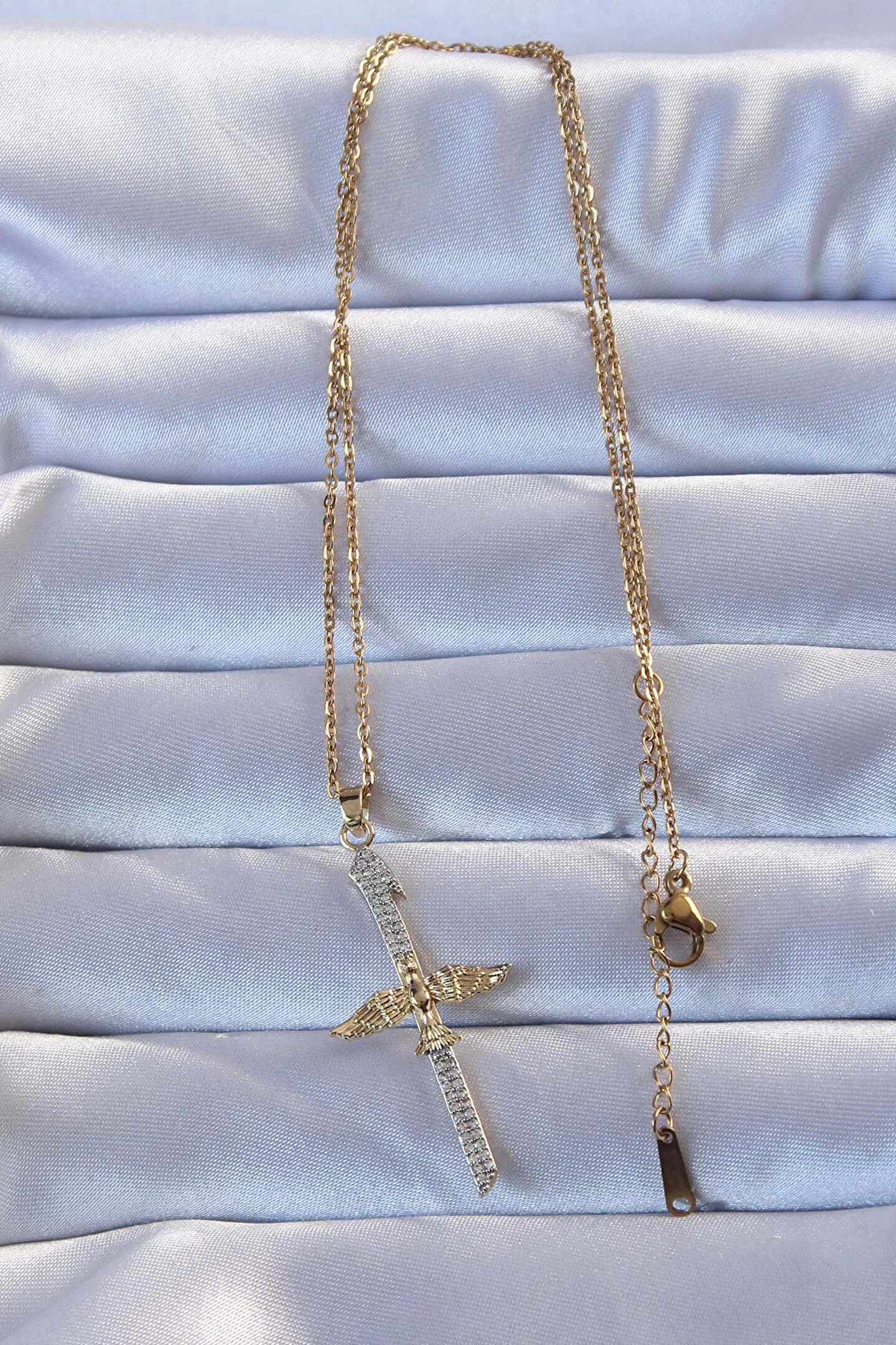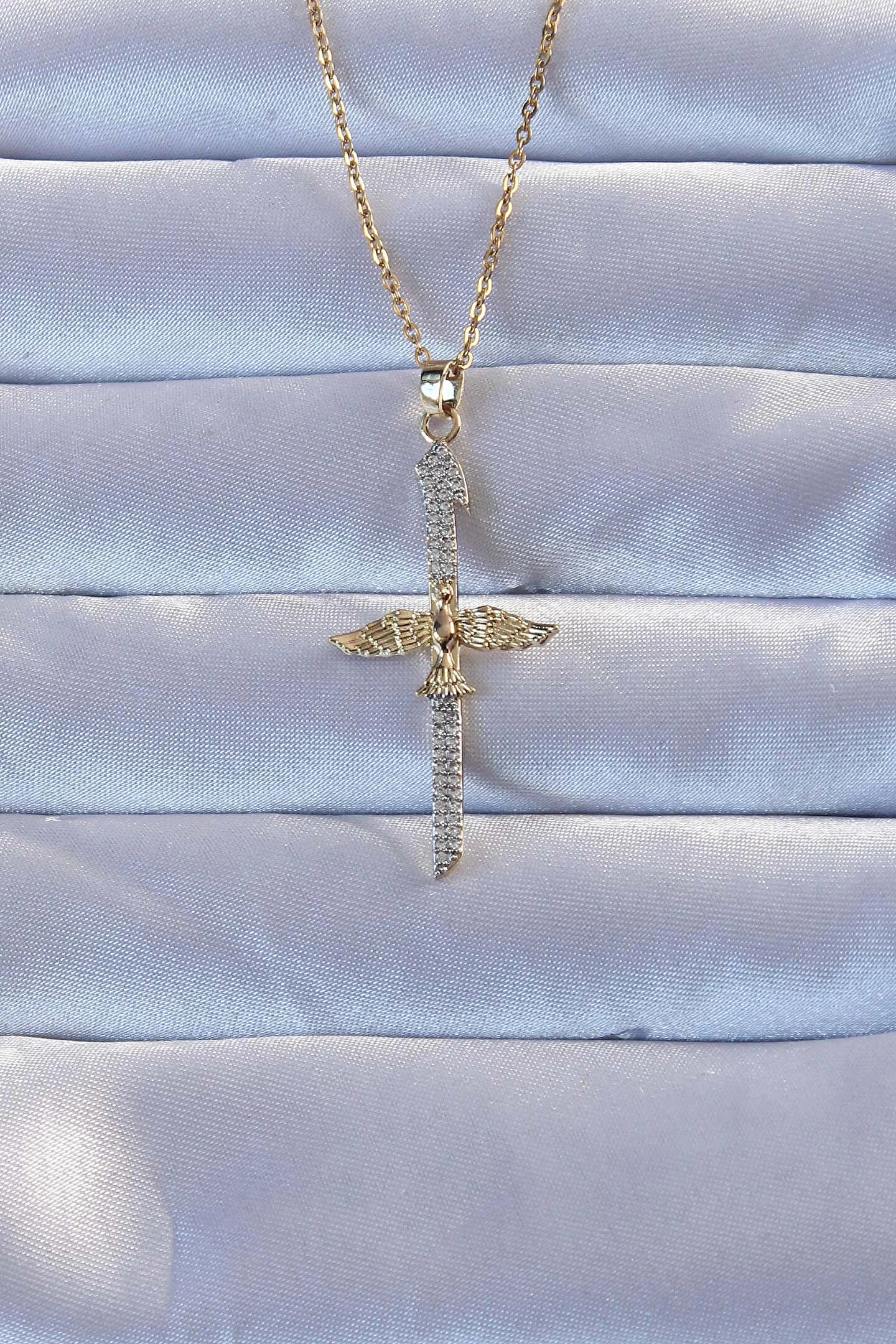Clariss 316L Altın Renk Zirkon Taşlı Kılıç Model Anka Kuşu Kolye