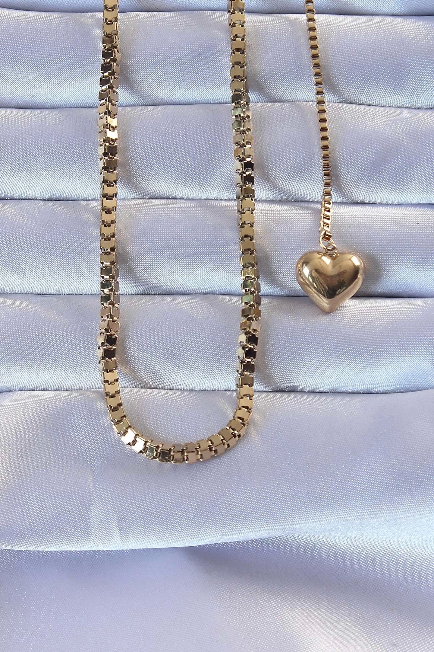 Clariss 316L Çelik Altın Renk Küp Zincirli Kalpli Kolye