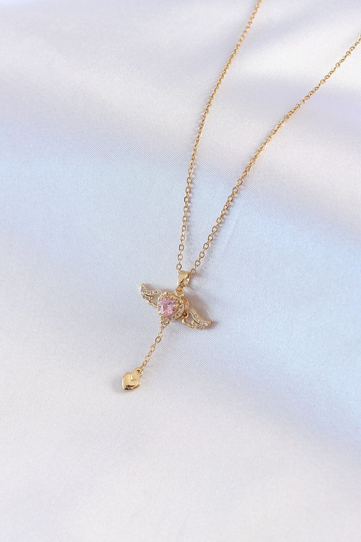 Clariss 316L Çelik Gold Renk Kanatlı Kalp Model Zirkon Taş Detay Kadın Kolye