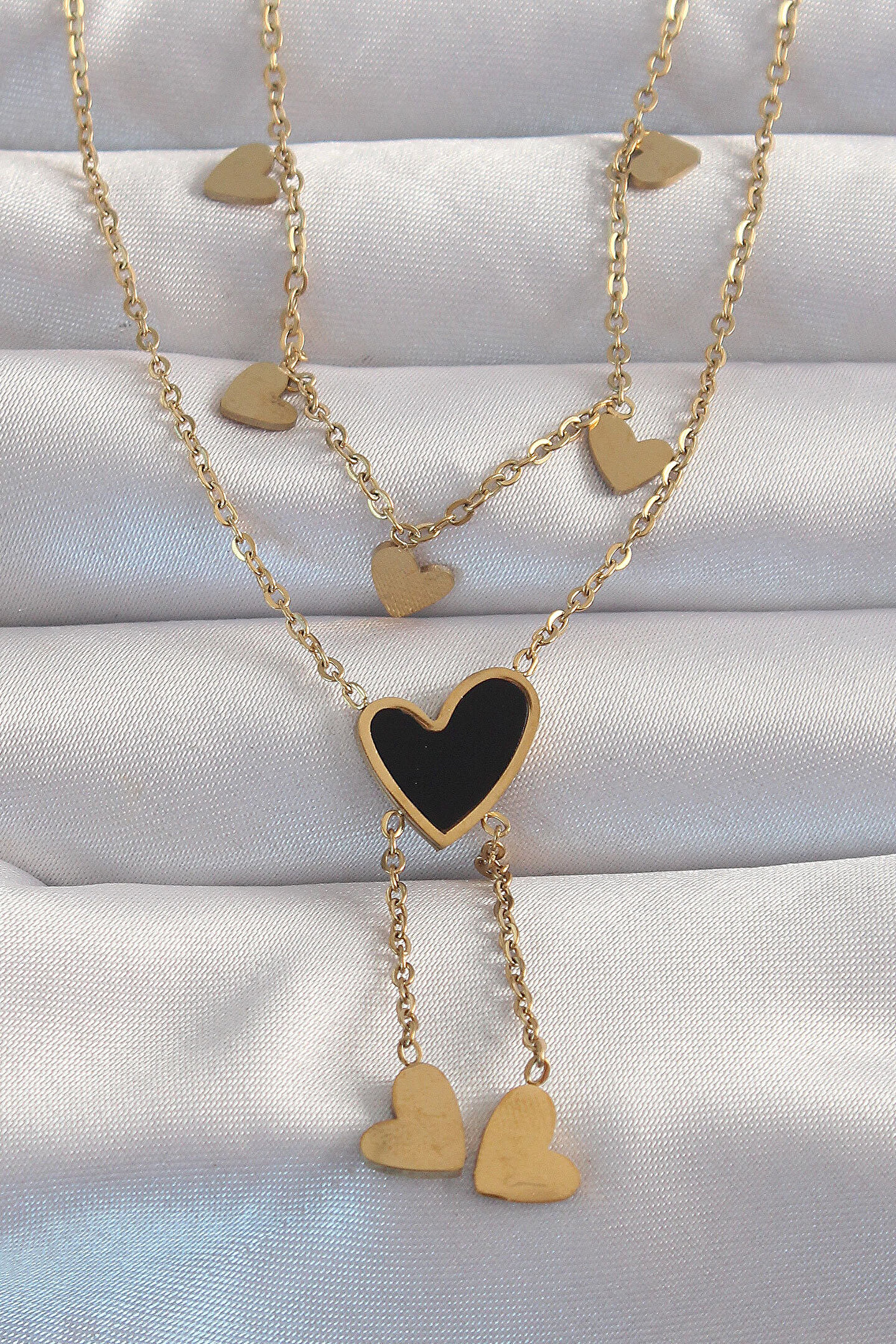 Clariss 316L Çelik Gold Renk Mineli Çoklu Kalp Ke
