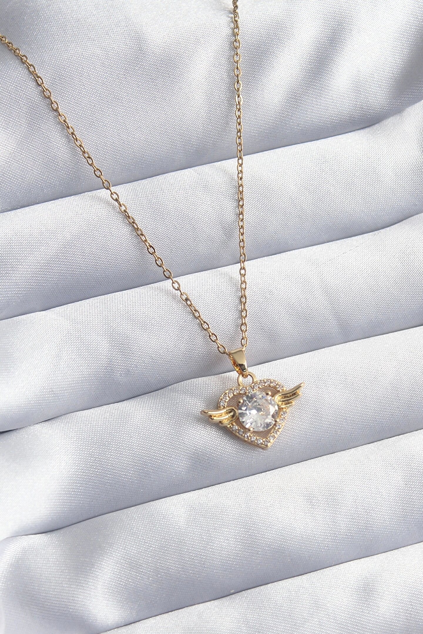 Clariss 316L Çelik Gold Renk Zincir Zirkon Taşlı Kalp Model Kadın Kolye