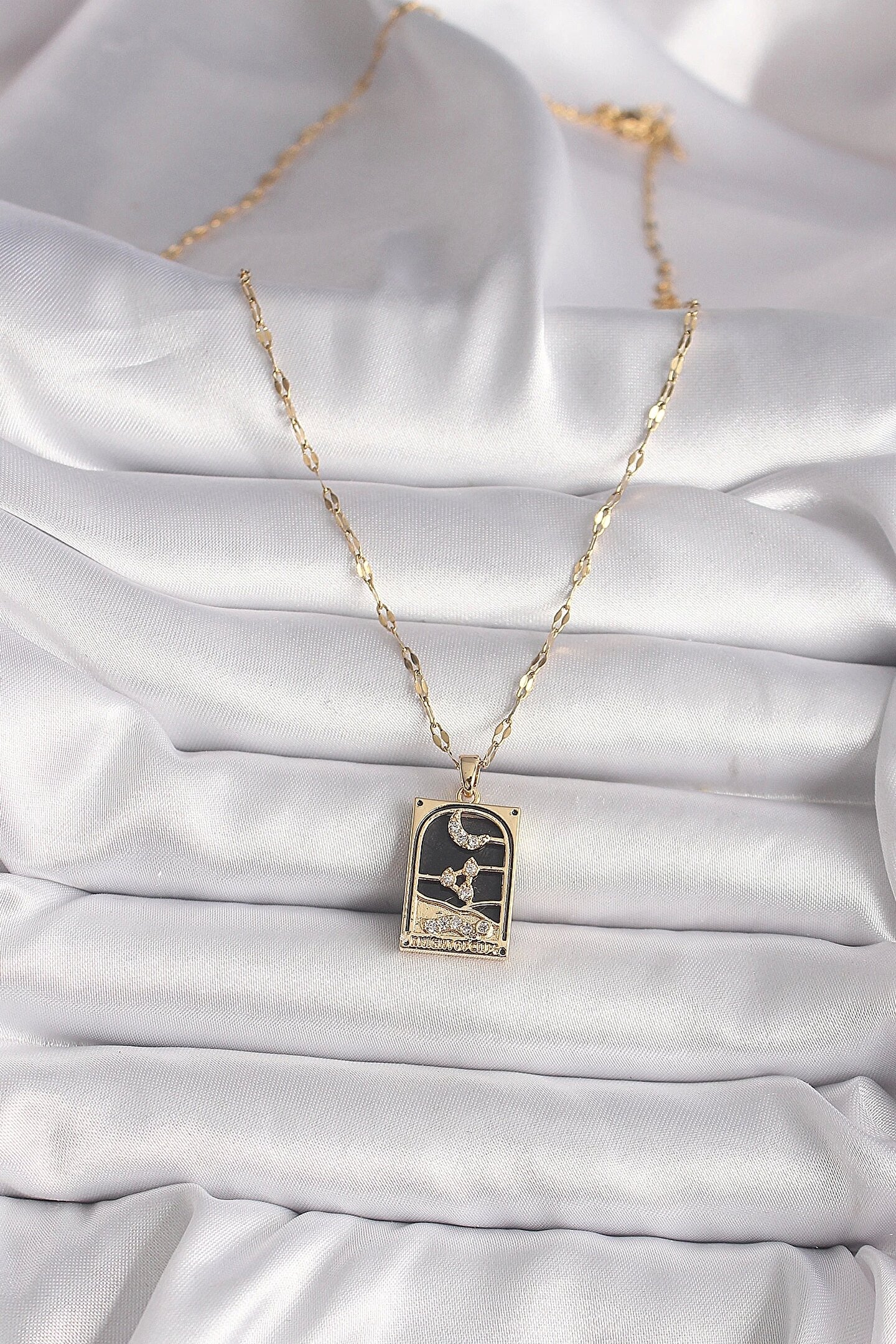 Clariss 316L Çelik Gold Renk Zirkon Taşlı Ay Figürlü Tarot Model Kadın Kolye