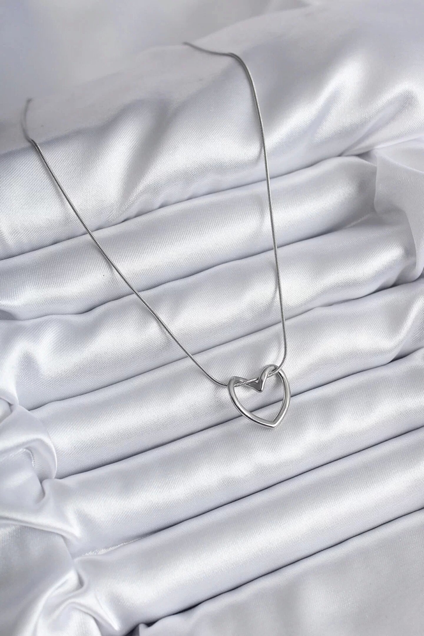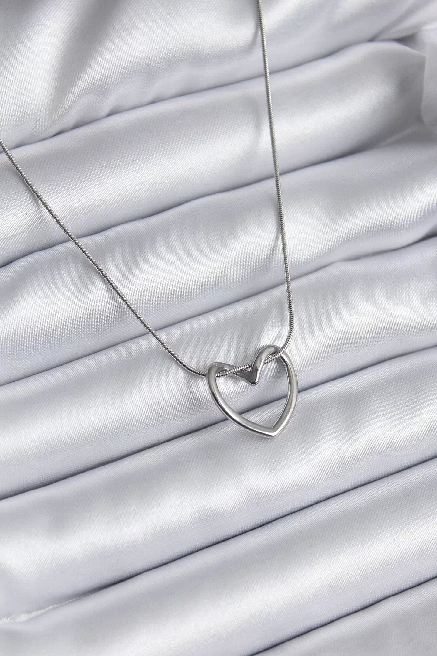 316L Çelik Gümüş Renk Kalp Model Kadın Kolye