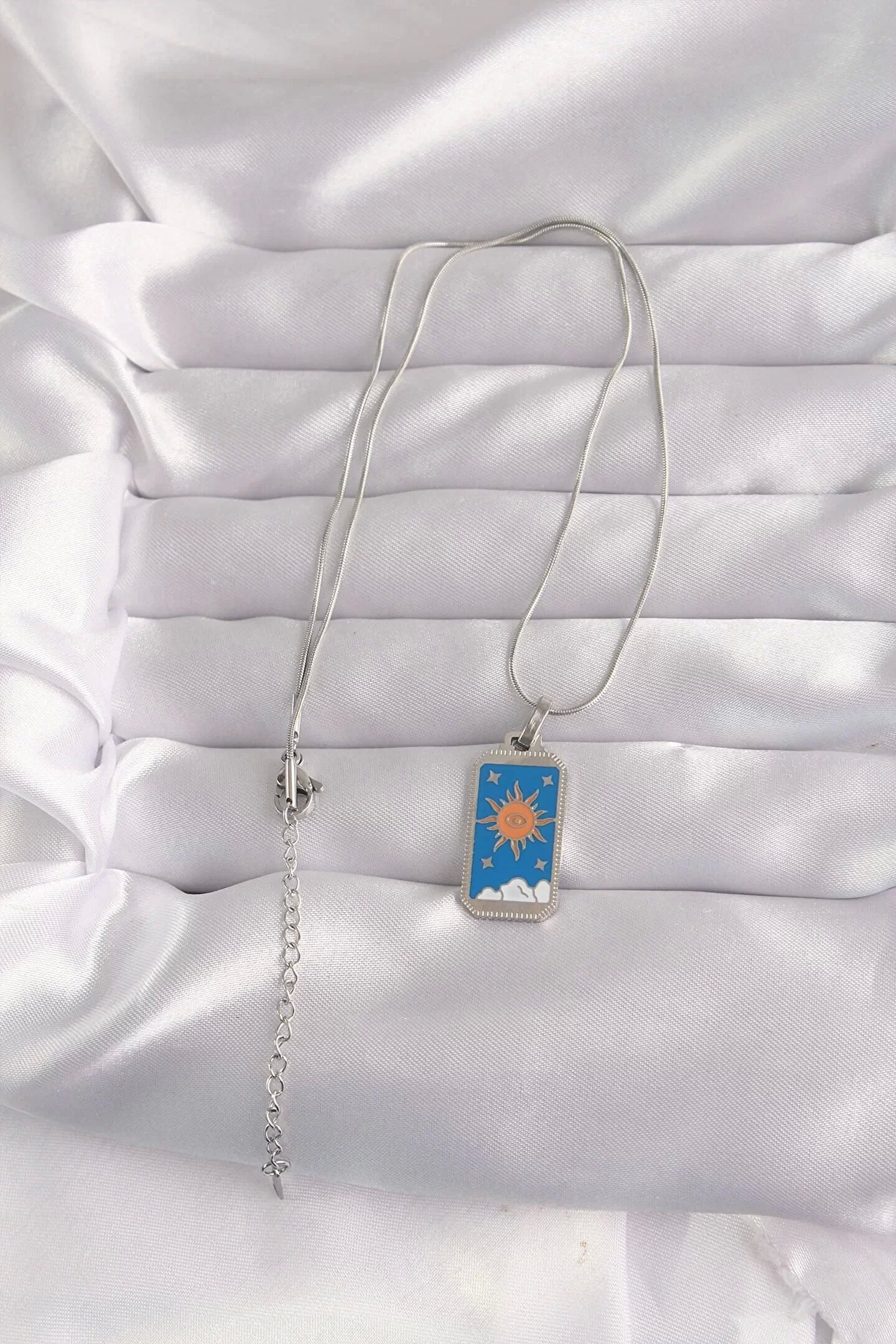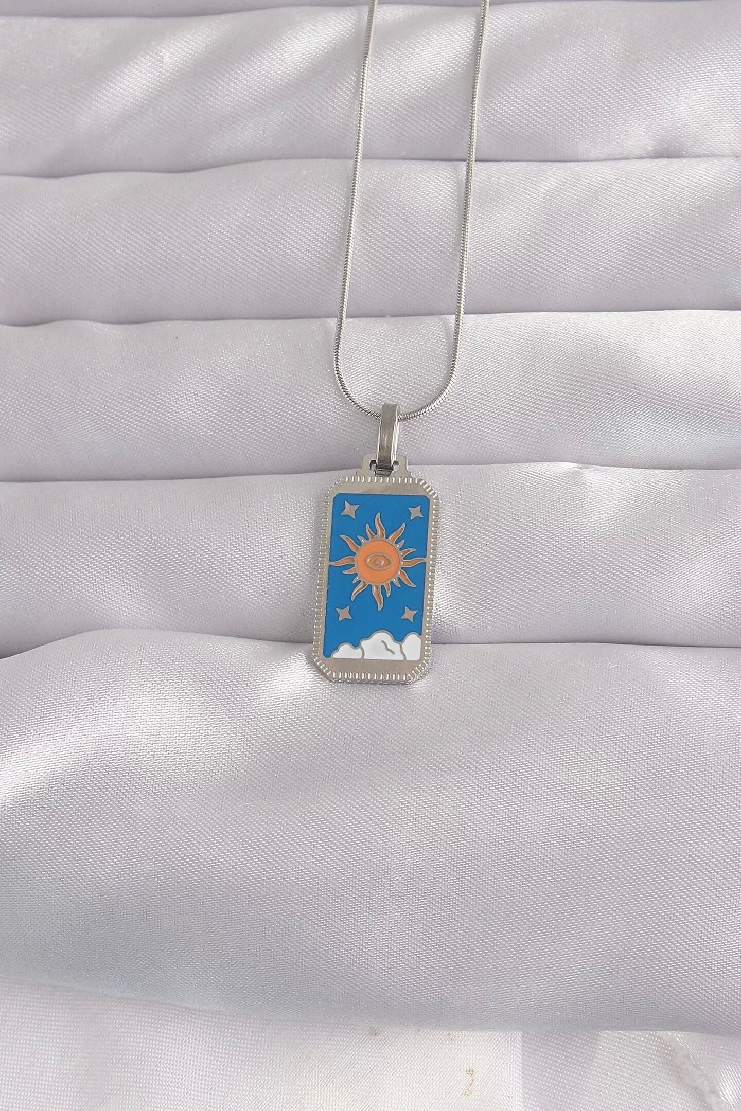 Clariss 316L Çelik Gümüş Renk Mavi Mineli Güneş Model Tarot Kolye