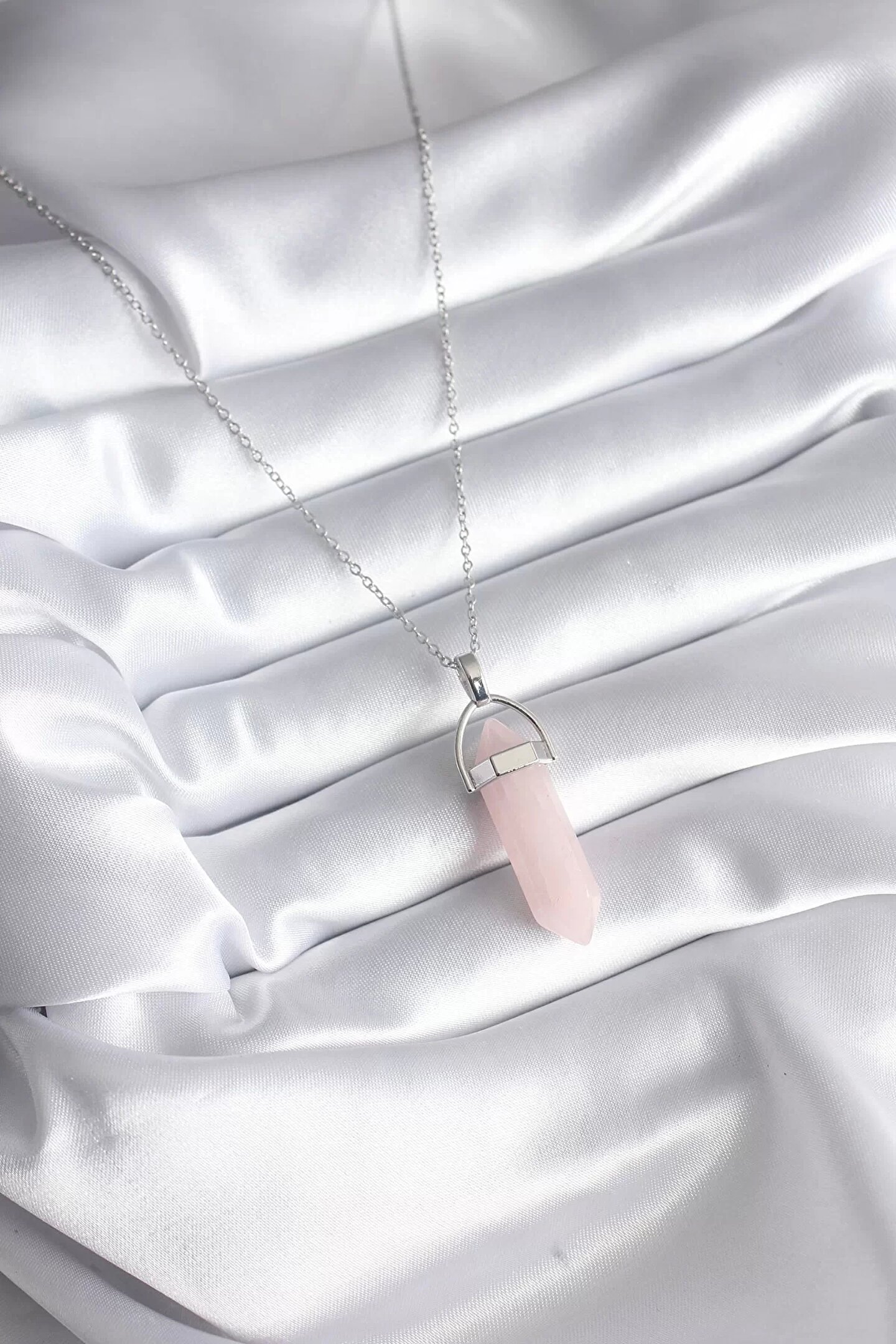 316L Çelik Gümüş Renk Pembe Taşlı Kadın Kolye