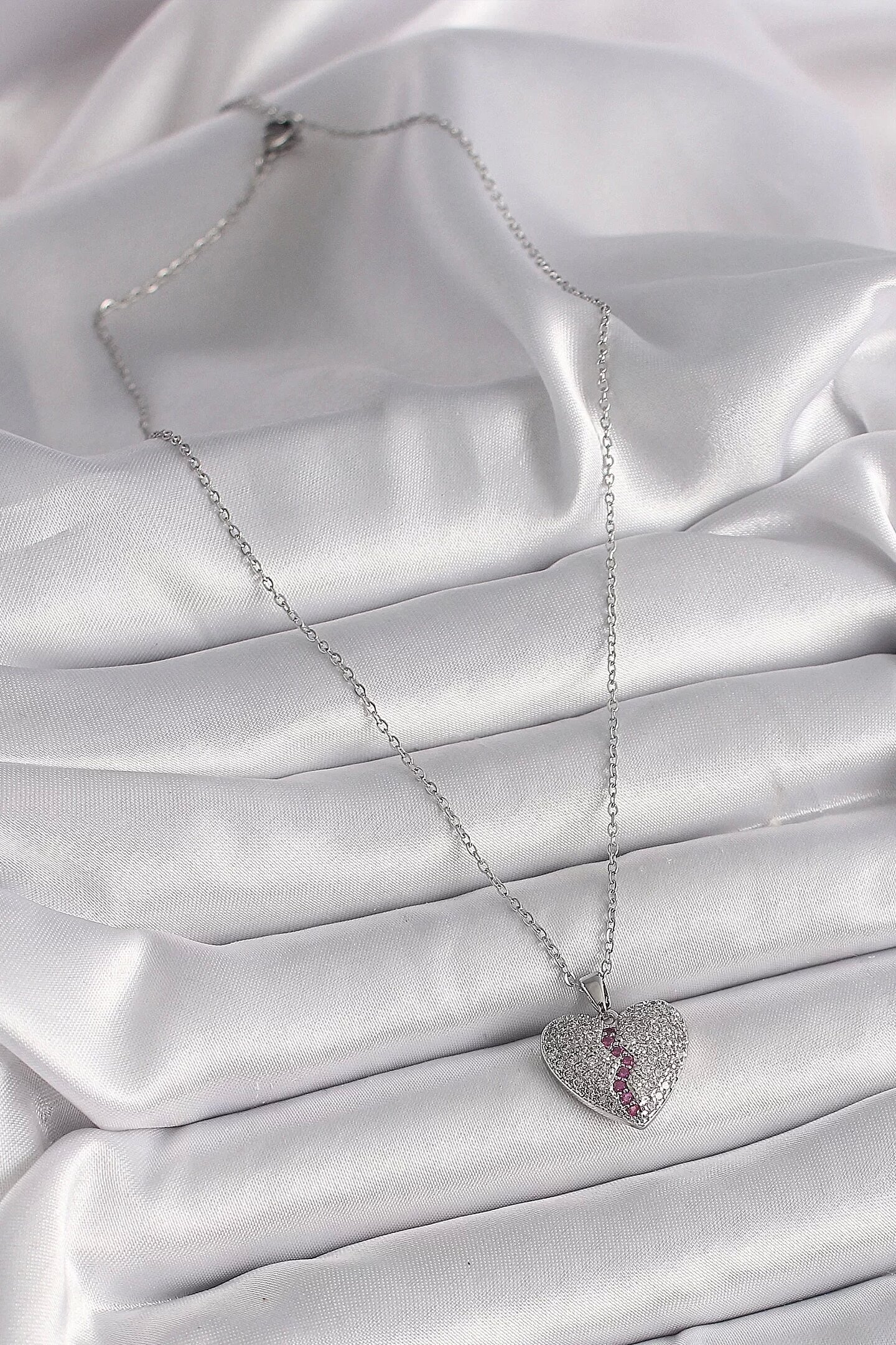 Clariss 316L Çelik Gümüş Renk Zincir Zirkon Taşlı Kalp Model Kadın Kolye