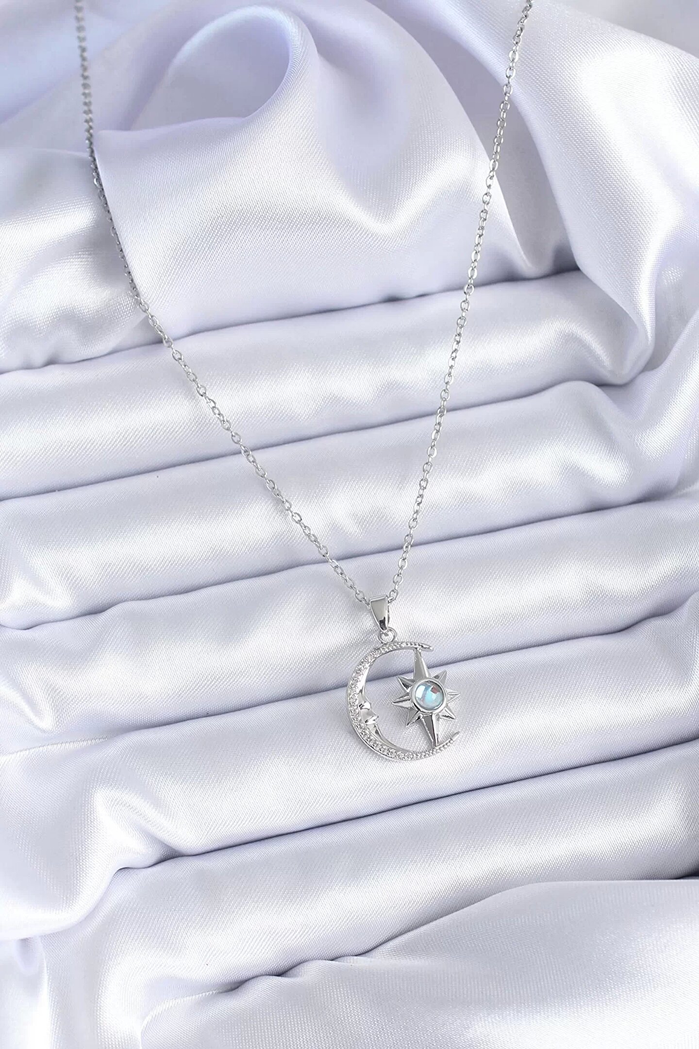 Clariss 316L Çelik Gümüş Renk Zirkon Taşlı Ay Yıldız Model Kadın Kolye
