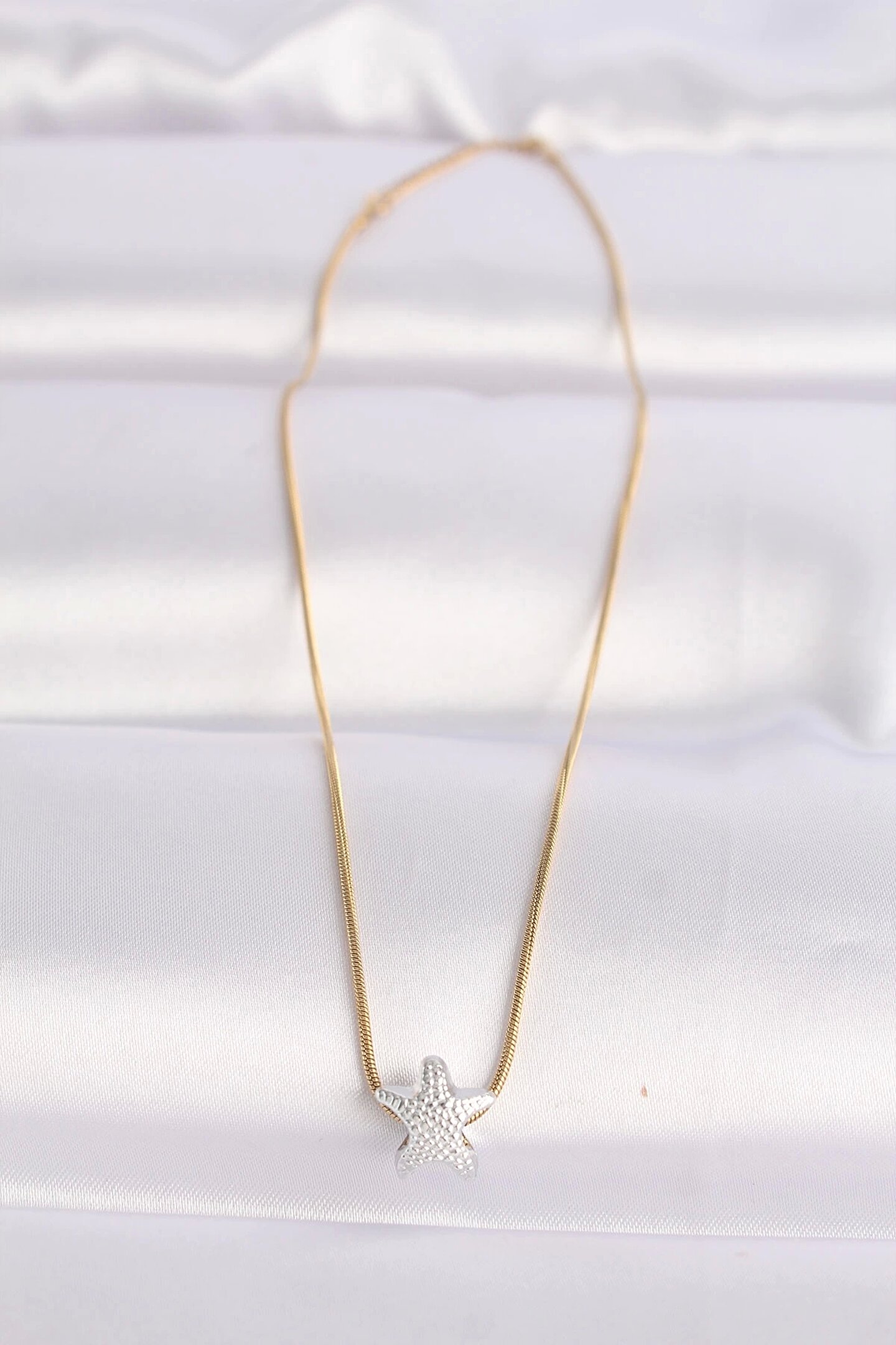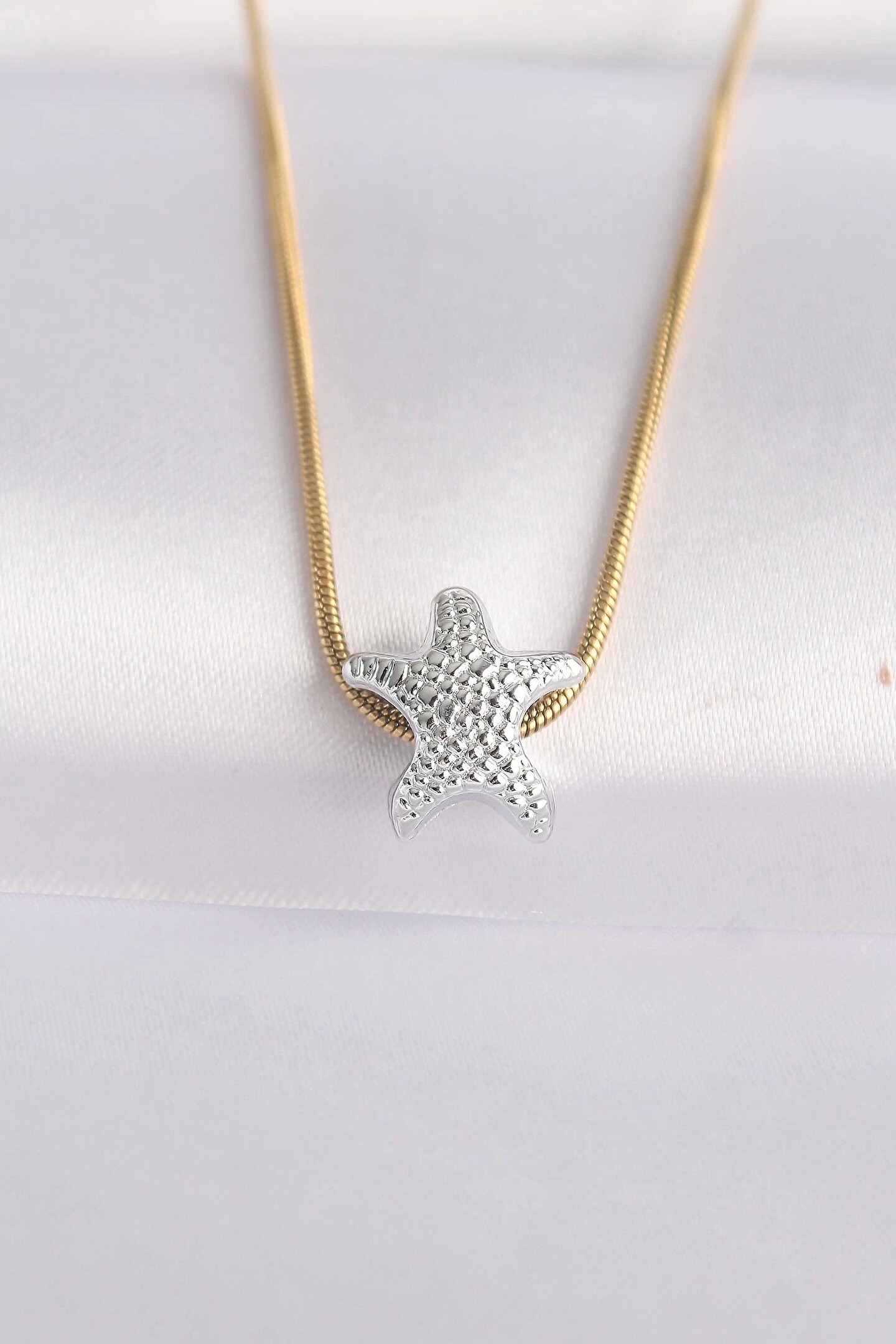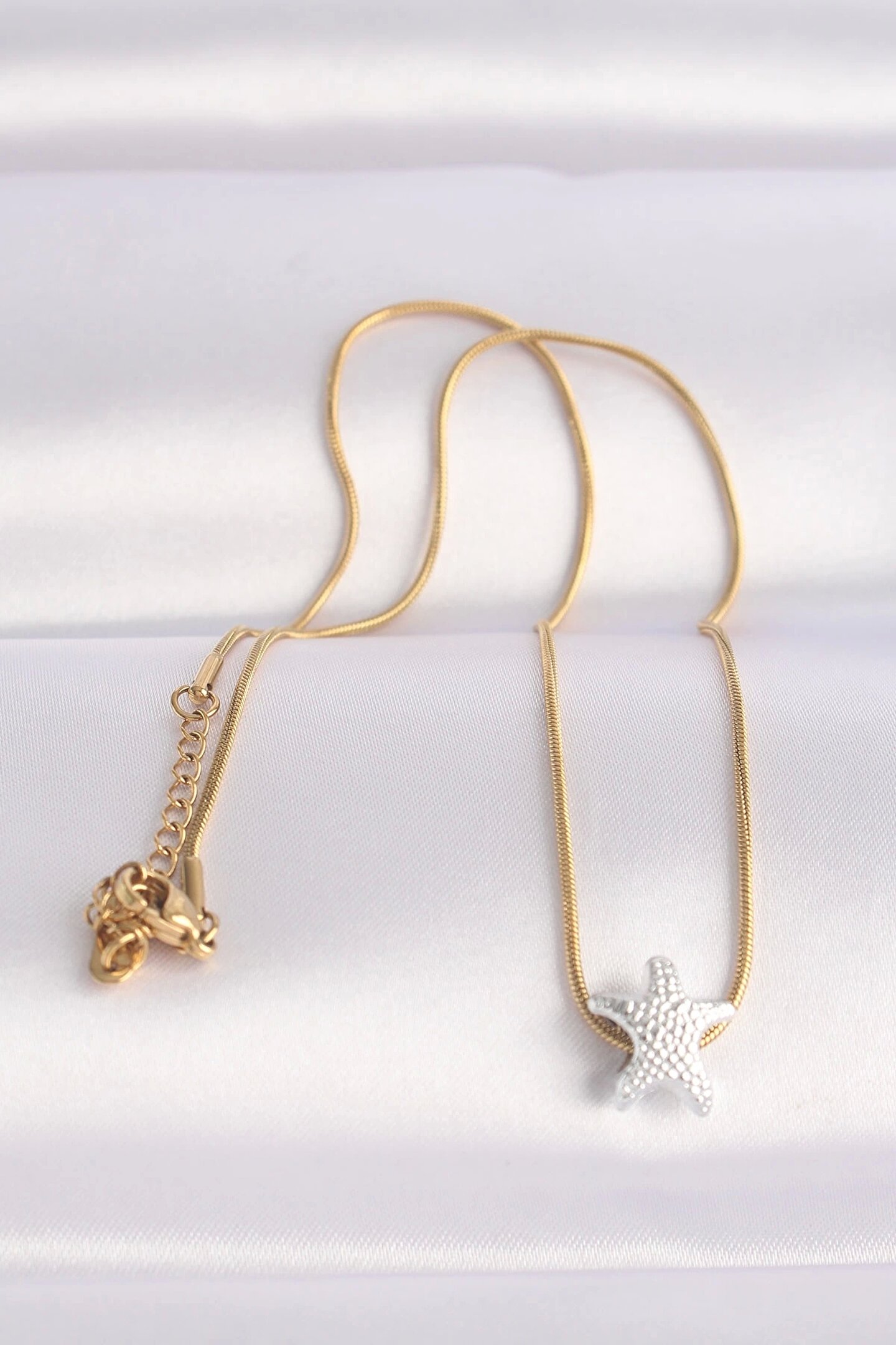 Clariss 316L Çelik Zincir Altın Renk Zincirli Gümüş Renk Deniz Yıldızı Tasarımlı Kolye