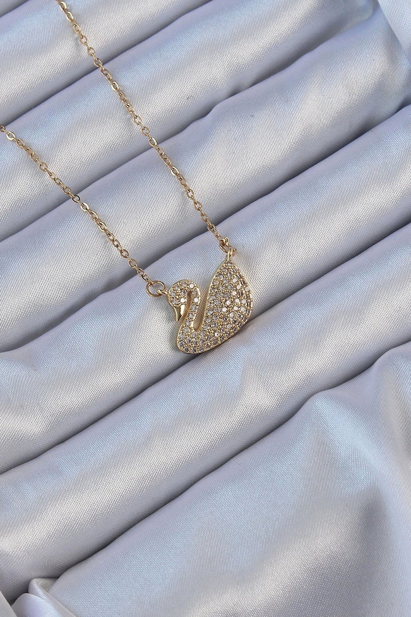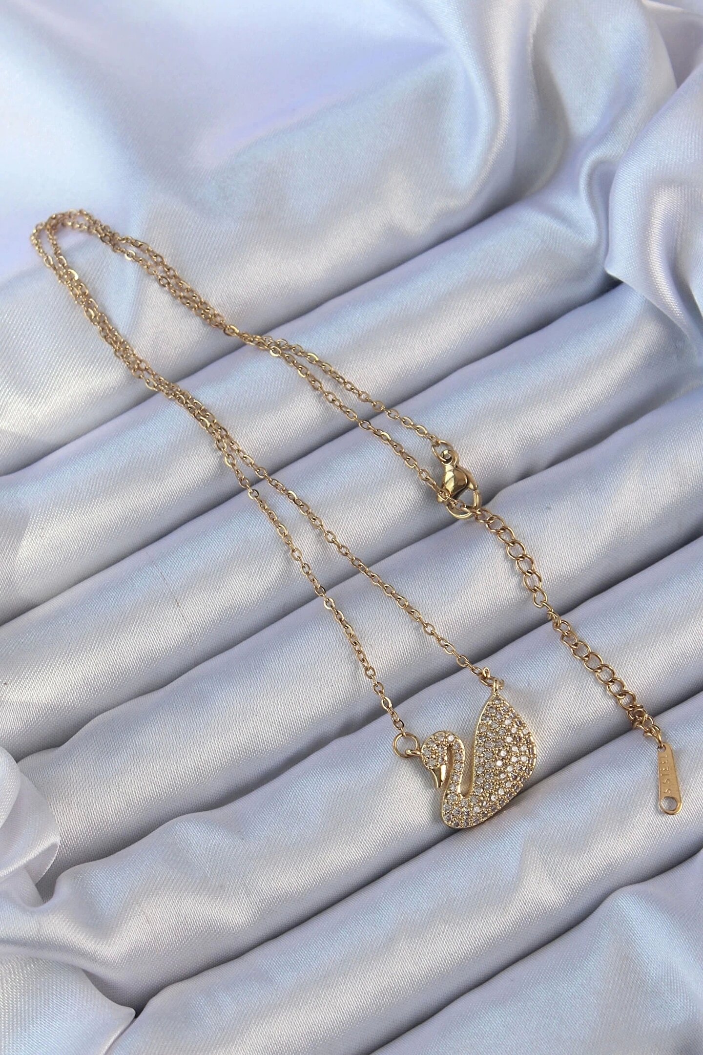 Clariss 316L Çelik Zincir Altın Renk Zirkon Taşlı Kuğu Kolye