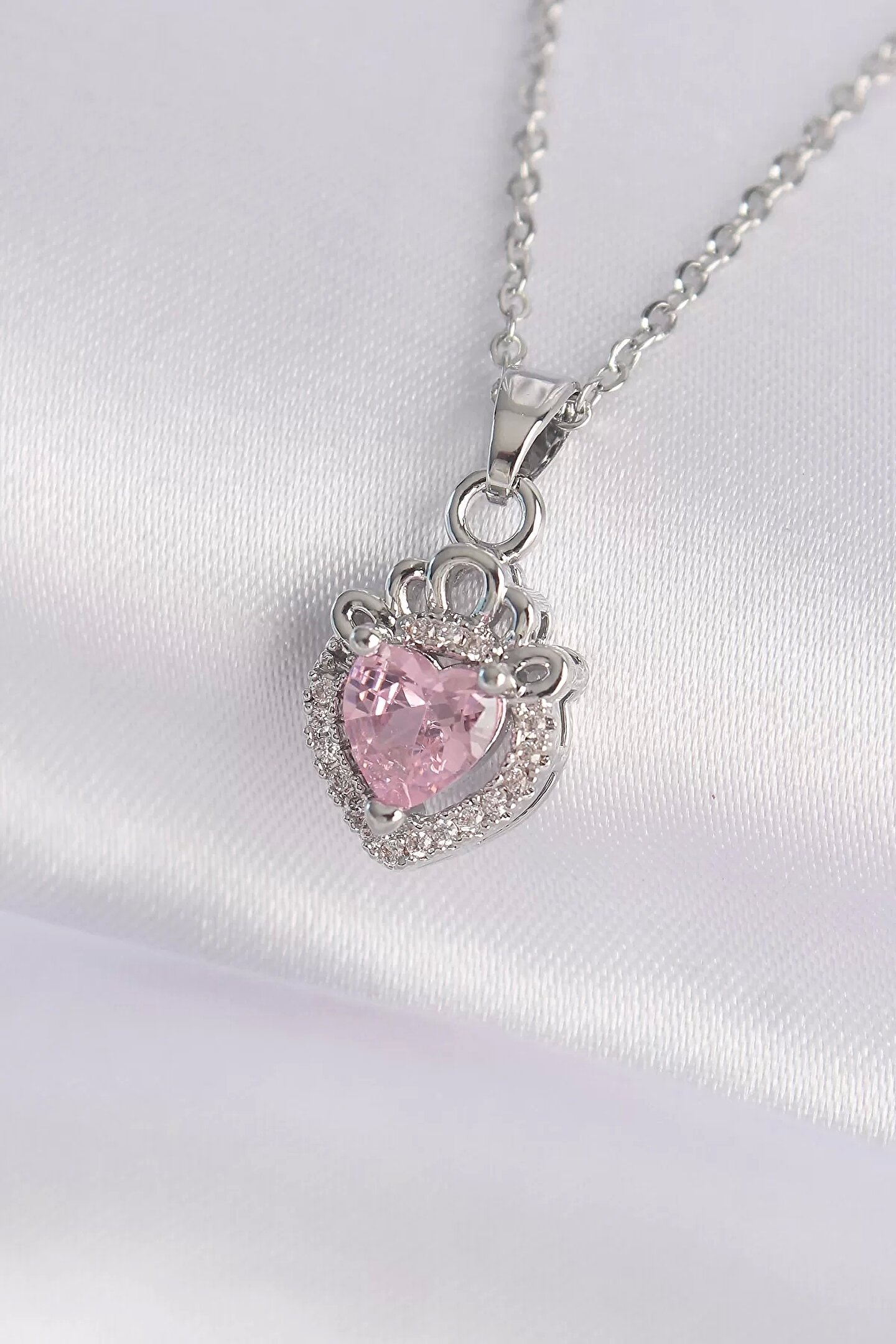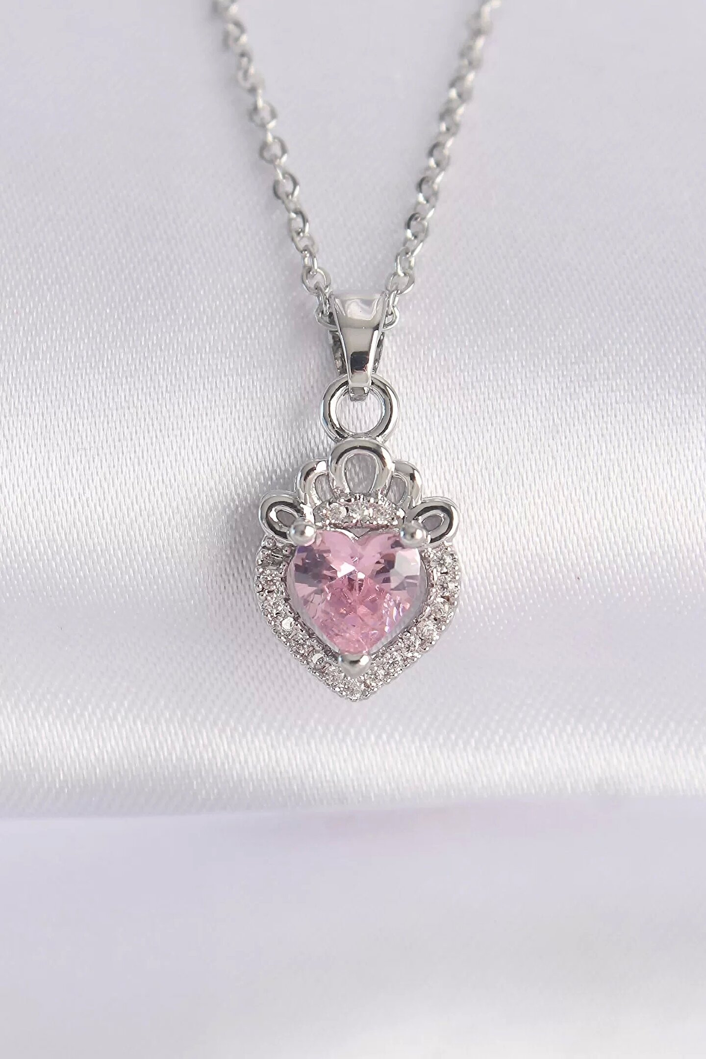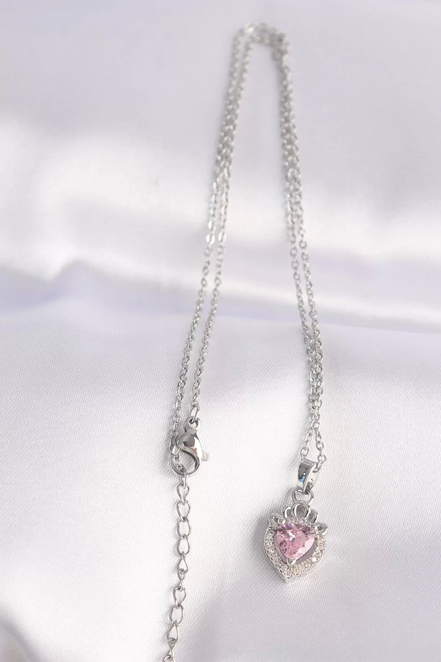 316L Çelik Zincir Gümüş Renk Pembe Zirkon Taşlı Rapunzel Kolye