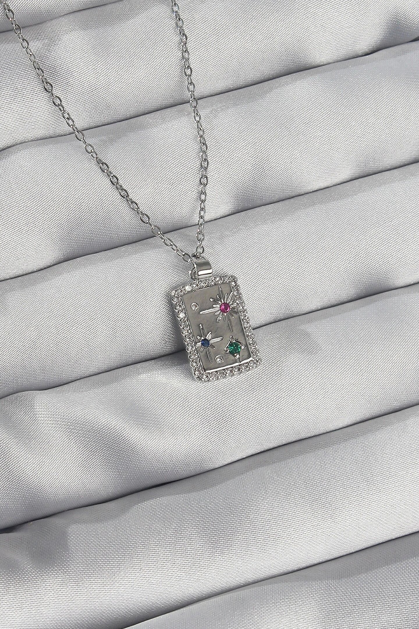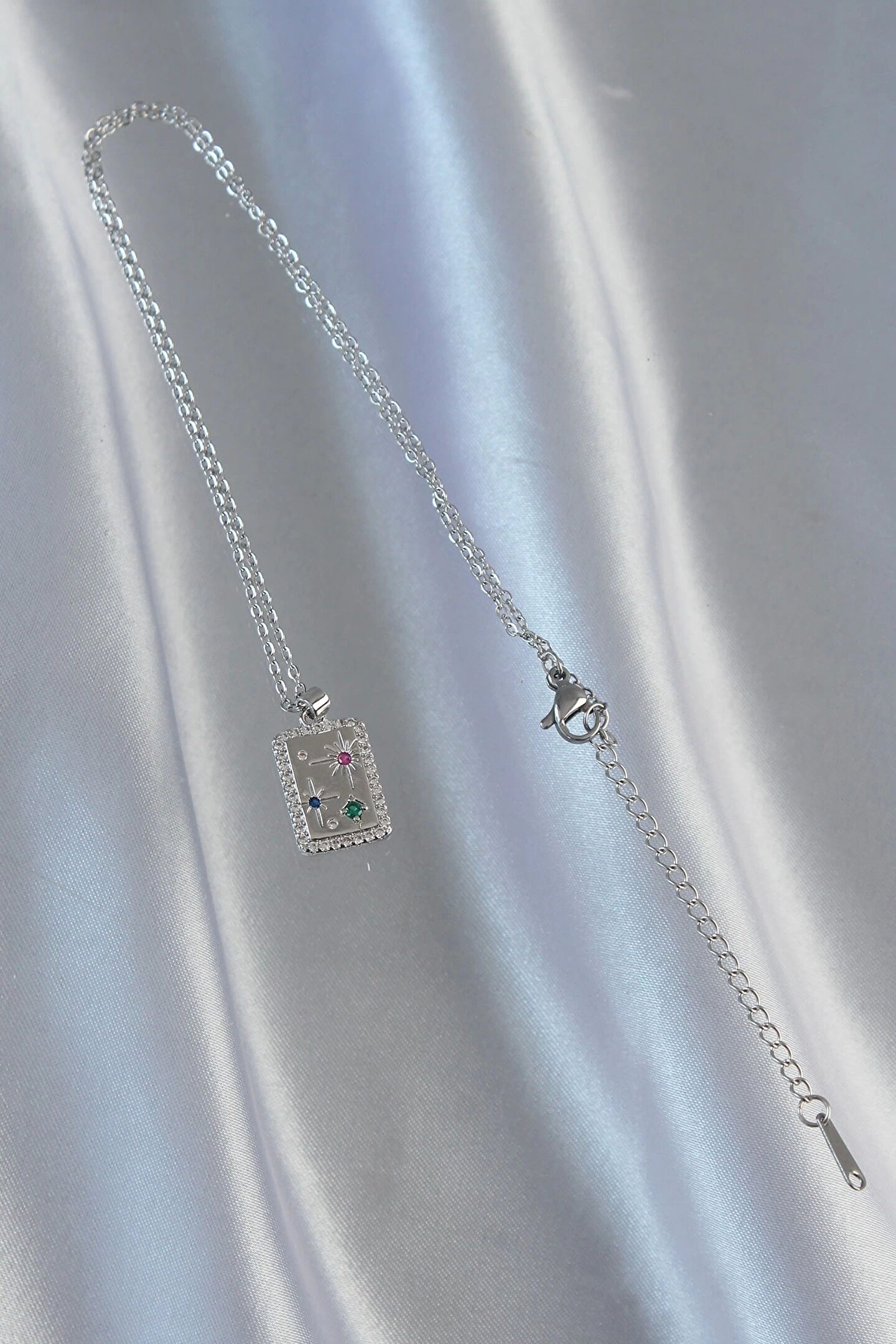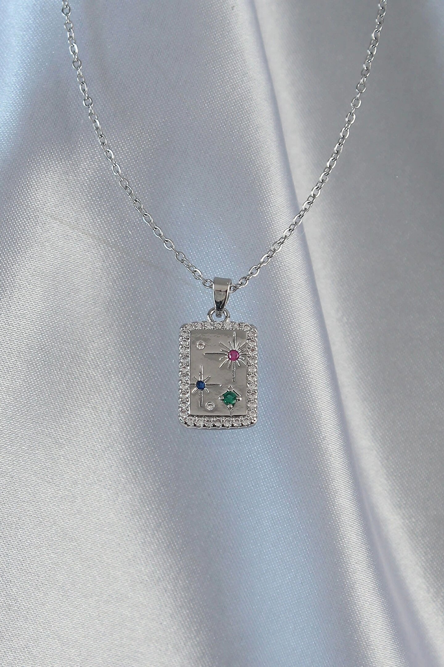 Clariss 316L Çelik Zincir Gümüş Renk Renkli Zirkon Taşlı Vintage Kolye