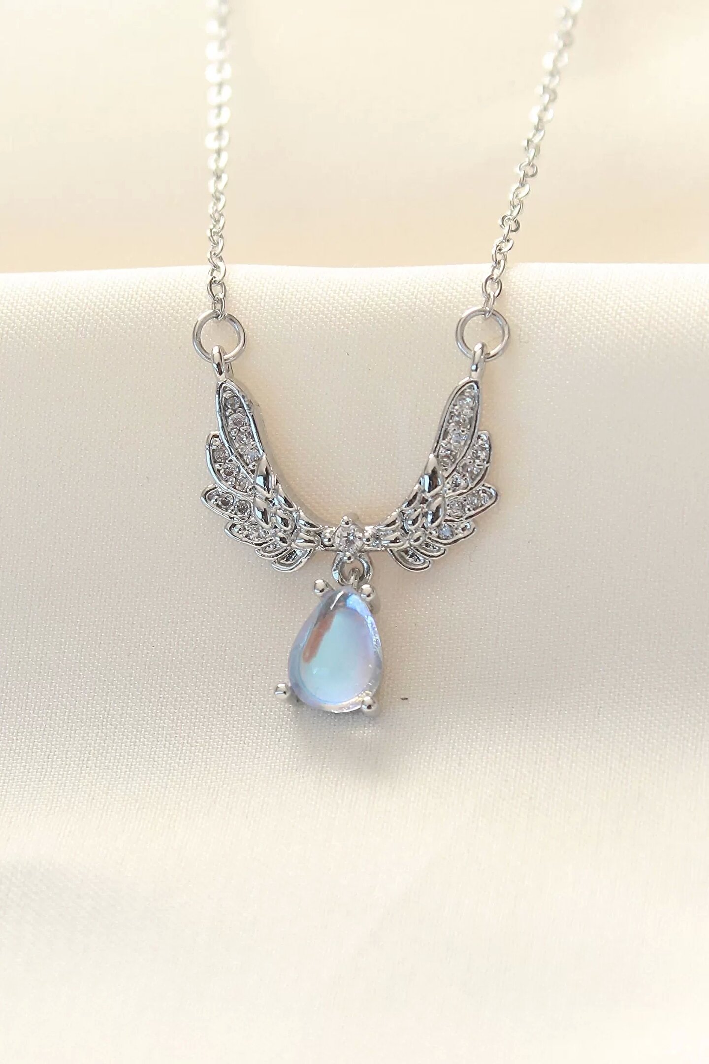 316L Zinciri Çelik Zirkon Taşlı Gümüş Renk Kanatlı Damla Kolye