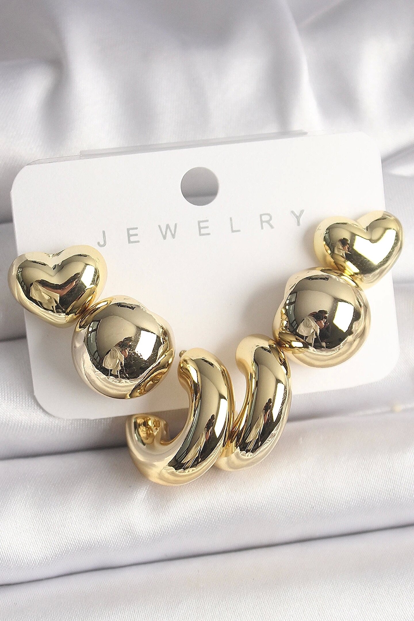 Clariss Gold Renk Kalp Halka Model CCB Plastik Kadın Küpe Seti