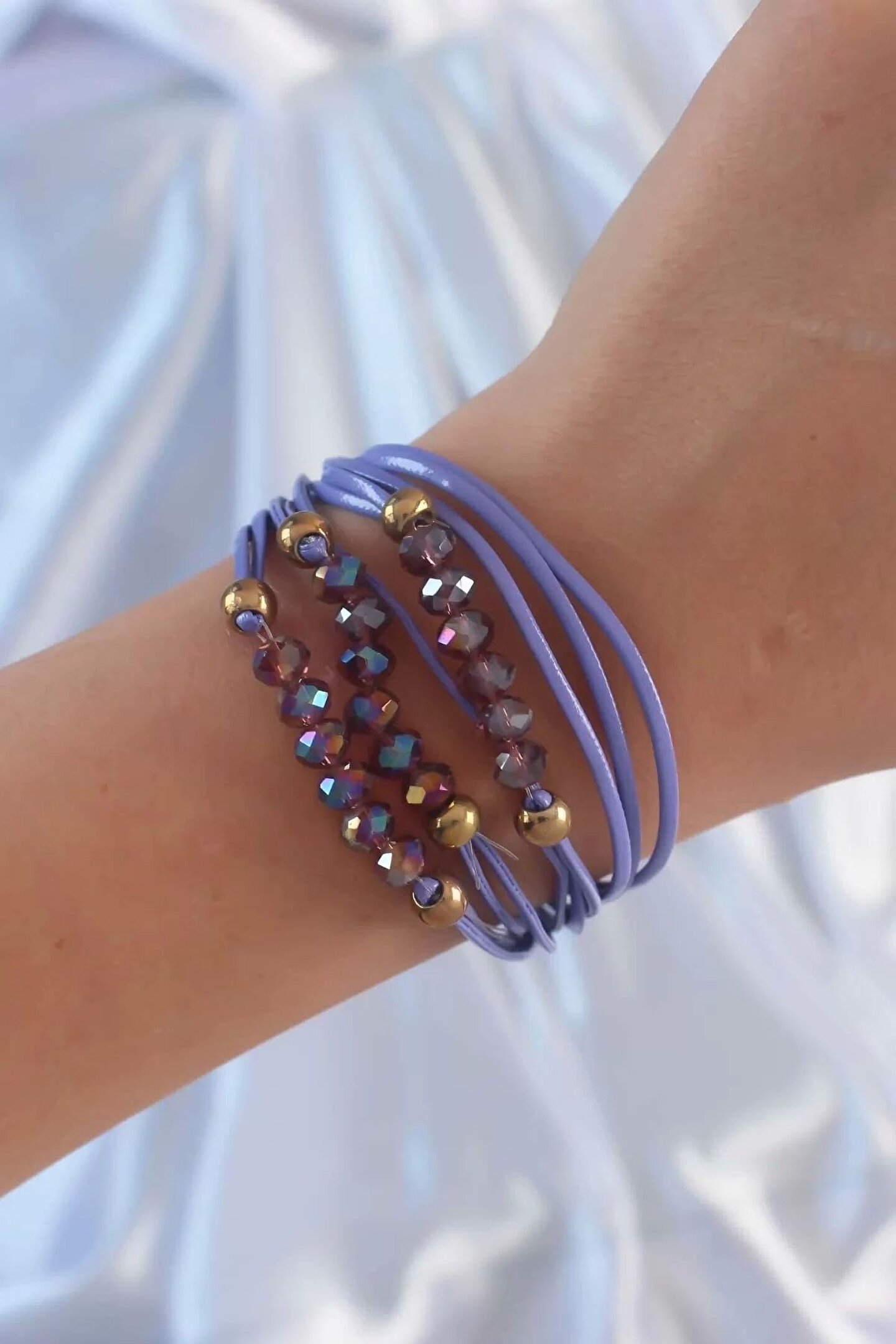 Clariss Lila Renk Zirkon Taşlı İpli Çoklu Bileklik