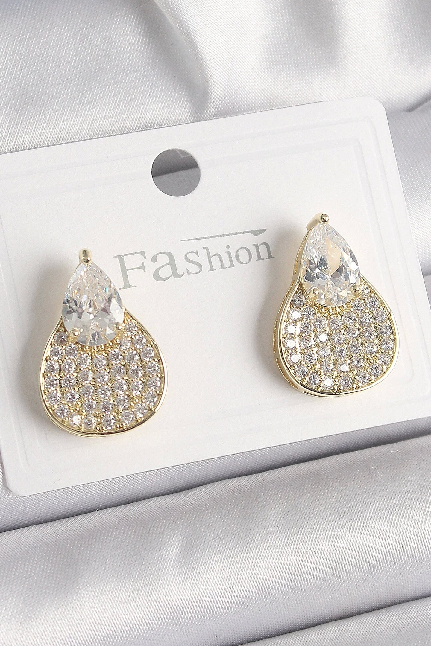 Clariss Pirinç Gold Renk Zirkon Taşlı Damla Model Kadın Küpe