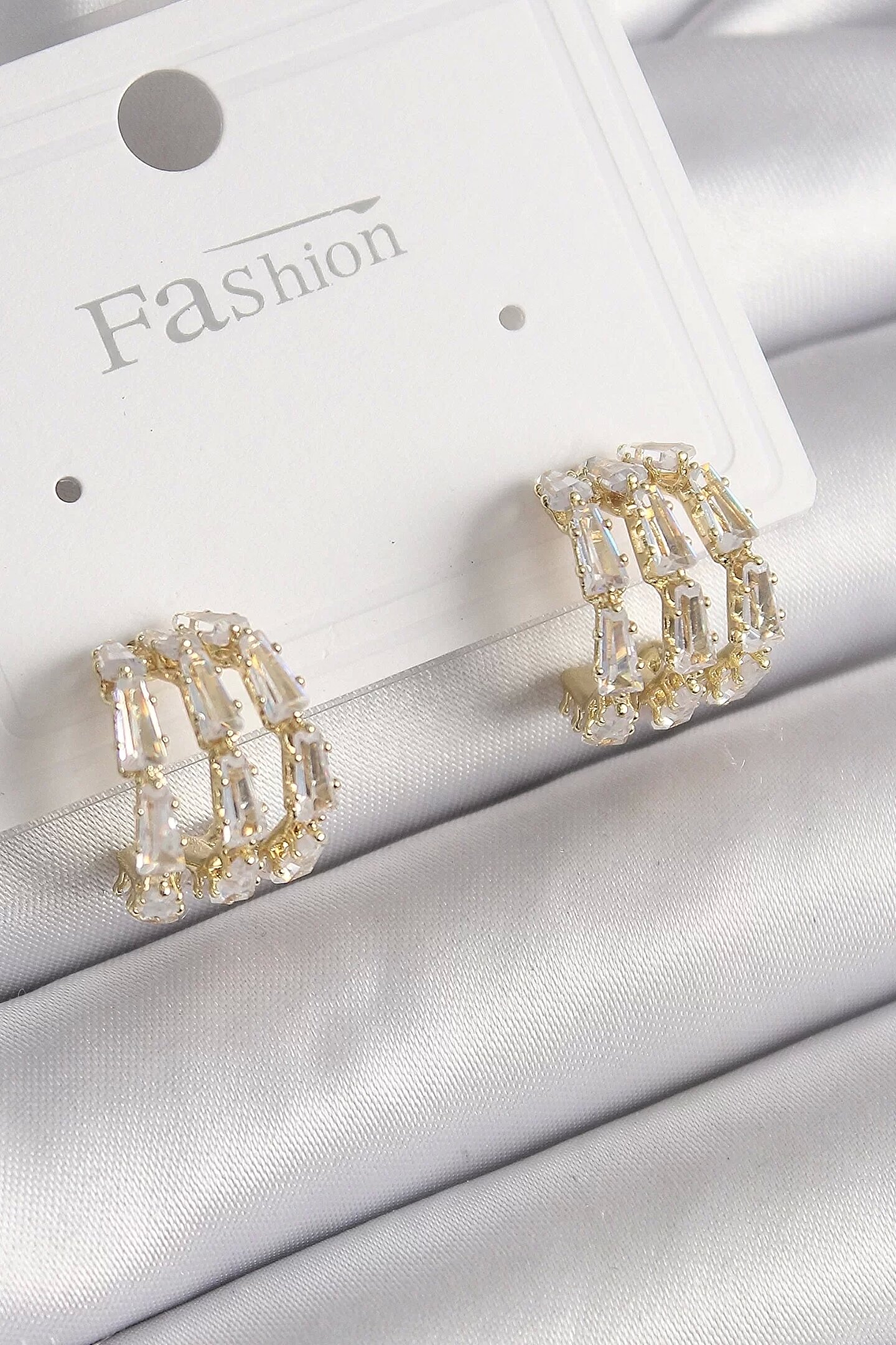 Clariss Pirinç Gold Renk Zirkon Taşlı Halka Model Kadın Küpe