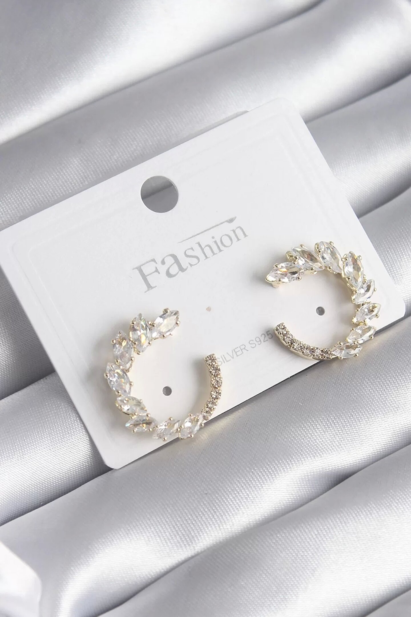 Clariss Pirinç Gold Renk Zirkon Taşlı Kadın Küpe