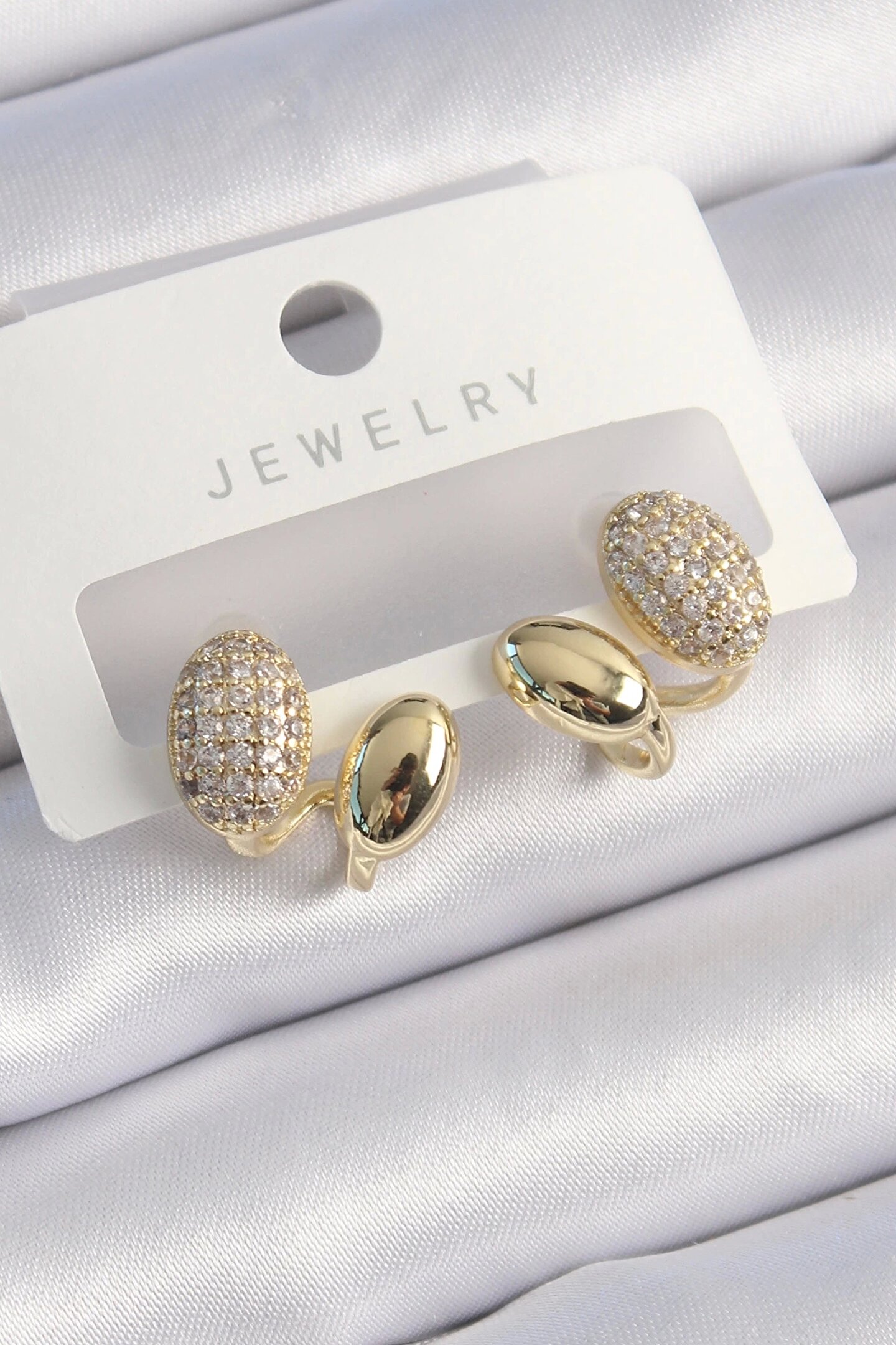 Pirinç Gold Renk Zirkon Taşlı Kadın Küpe