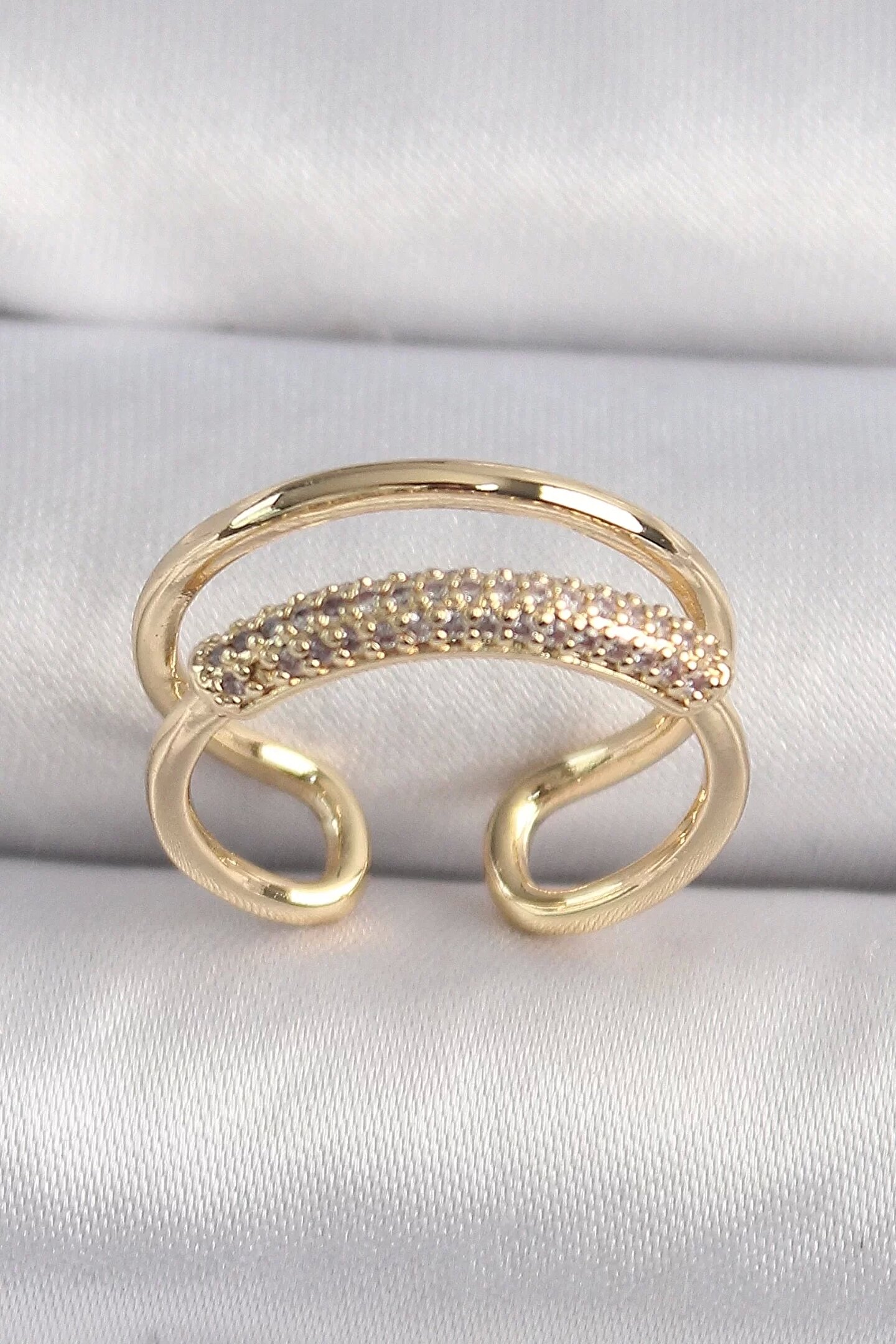 Clariss Pirinç Gold Renk Zirkon Taşlı Kadın Yüzük