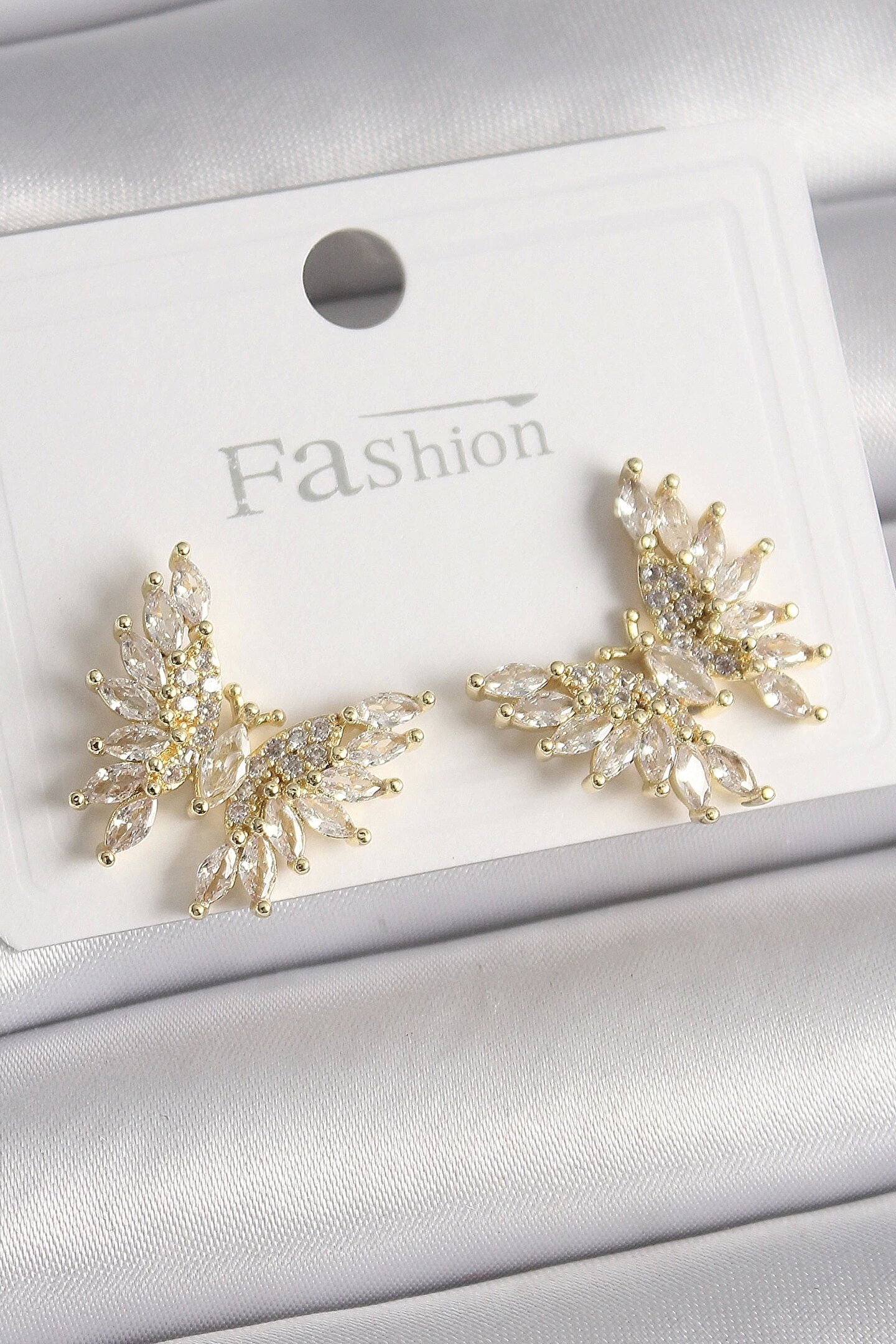 Clariss Pirinç Gold Renk Zirkon Taşlı Kelebek Model Kadın Küpe