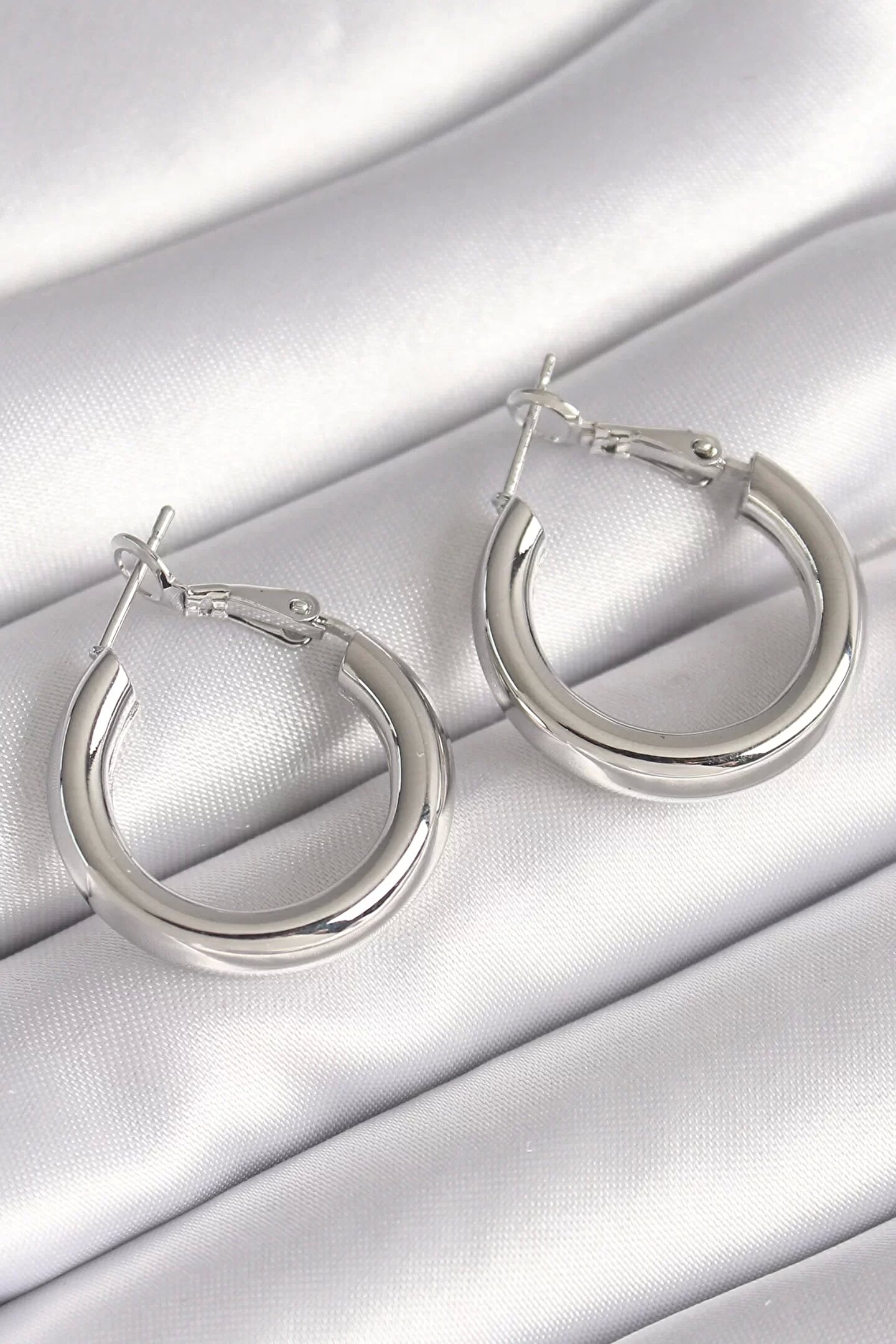 Clariss Pirinç Gümüş Renk Halka Model Kadın Küpe