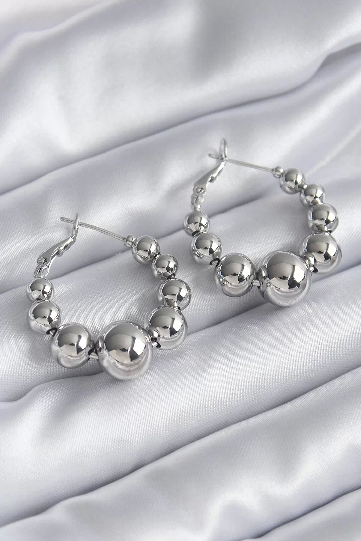Clariss Pirinç Gümüş Renk Halka Model Kadın Küpe
