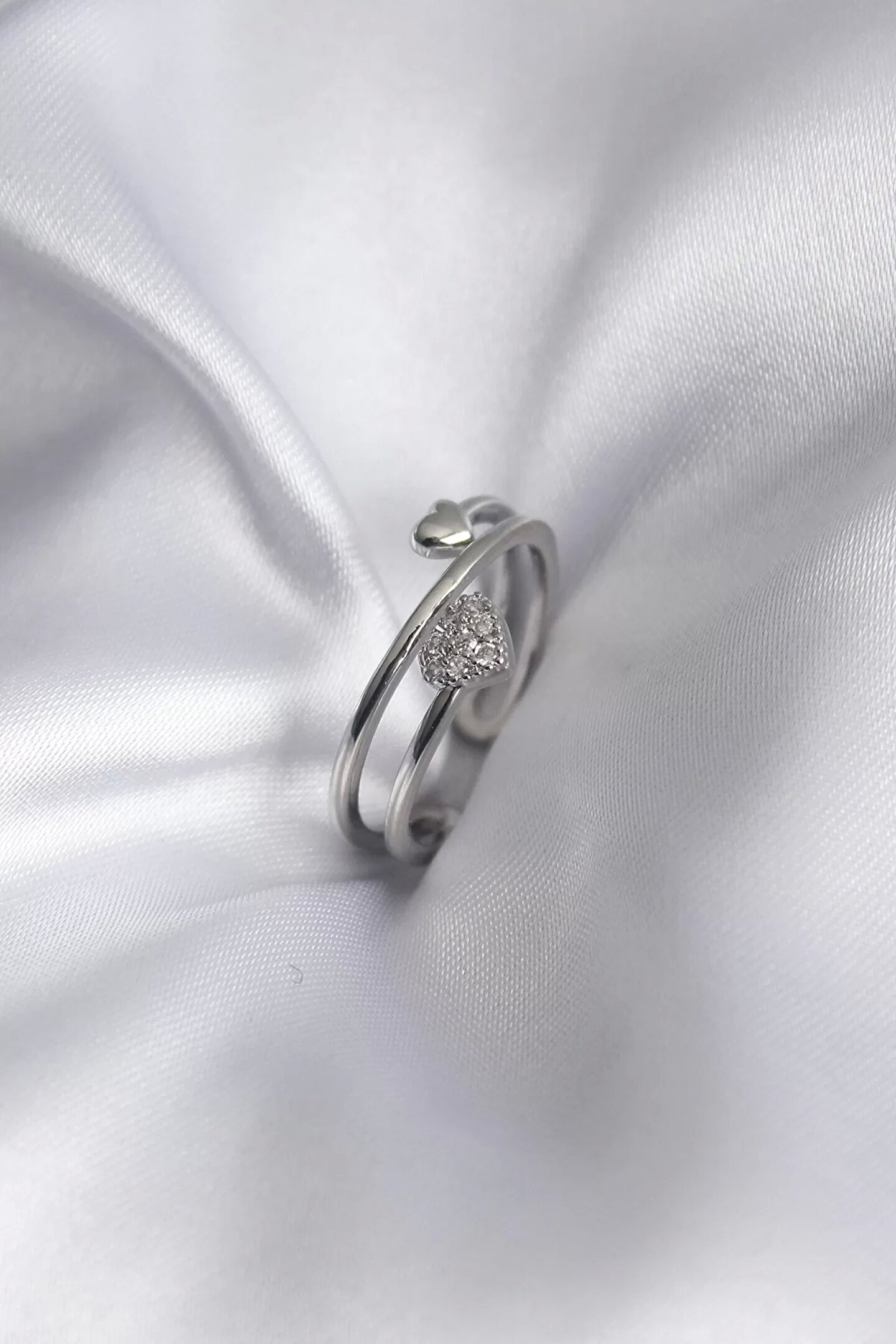 Pirinç Gümüş Renk Zirkon Taş Detay Kalp Model Kadın Yüzük