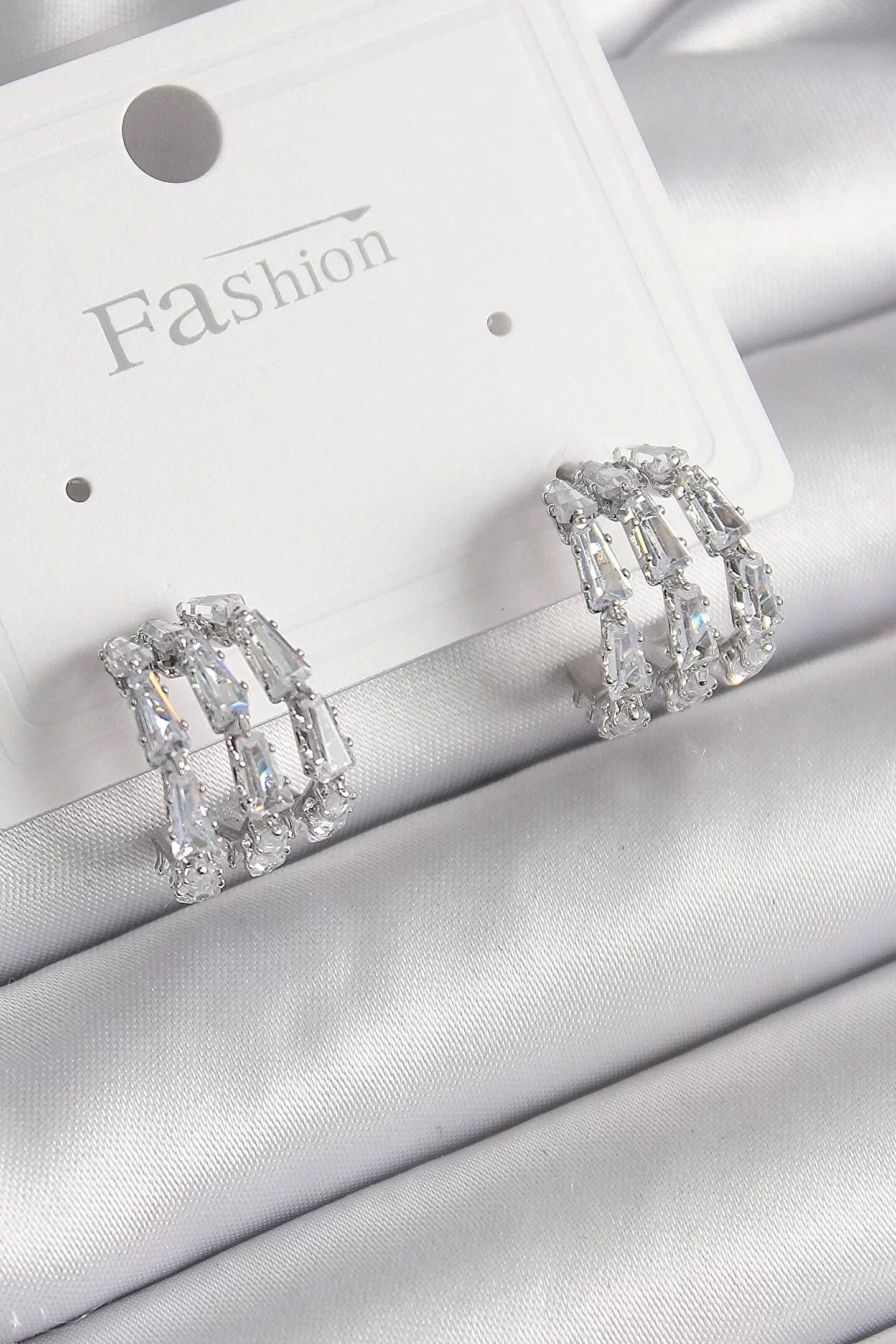 Clariss Pirinç Gümüş Renk Zirkon Taşlı Halka Model Kadın Küpe