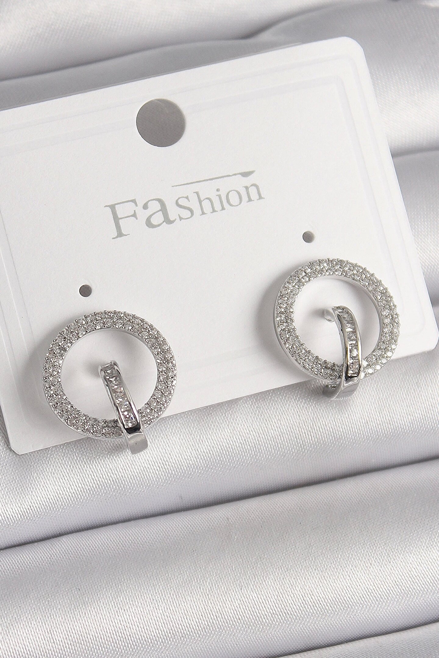Clariss Pirinç Gümüş Renk Zirkon Taşlı Halka Model Kadın Küpe