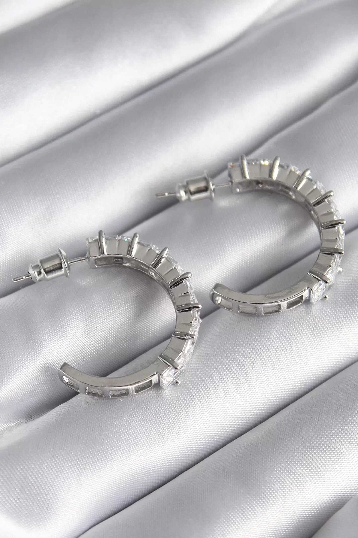 Clariss Pirinç Gümüş Renk Zirkon Taşlı Halka Model Kadın Küpe