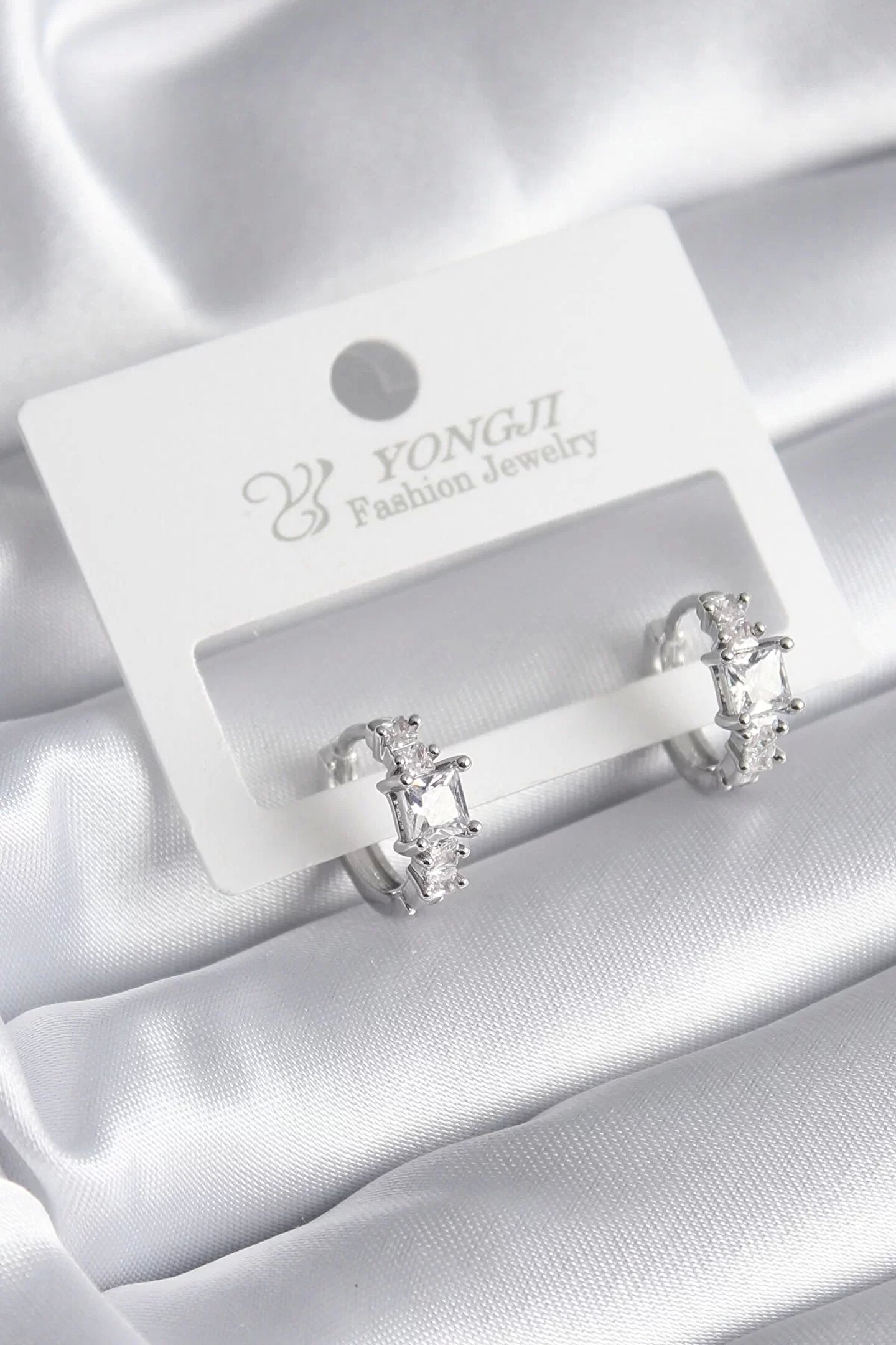 Pirinç Gümüş Renk Zirkon Taşlı Kadın Küpe
