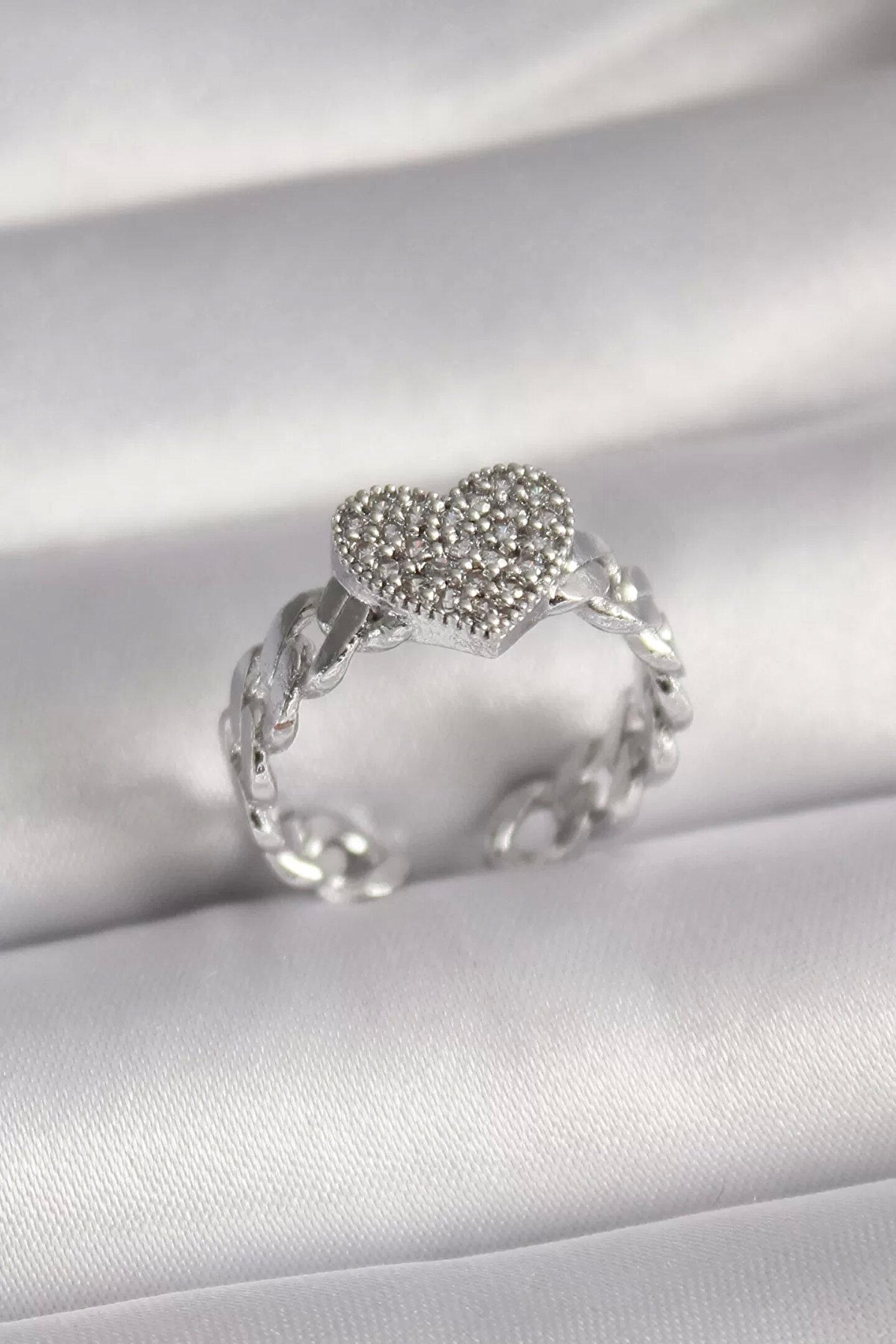 Clariss Pirinç Gümüş Renk Zirkon Taşlı Kalp Model Kadın Yüzük