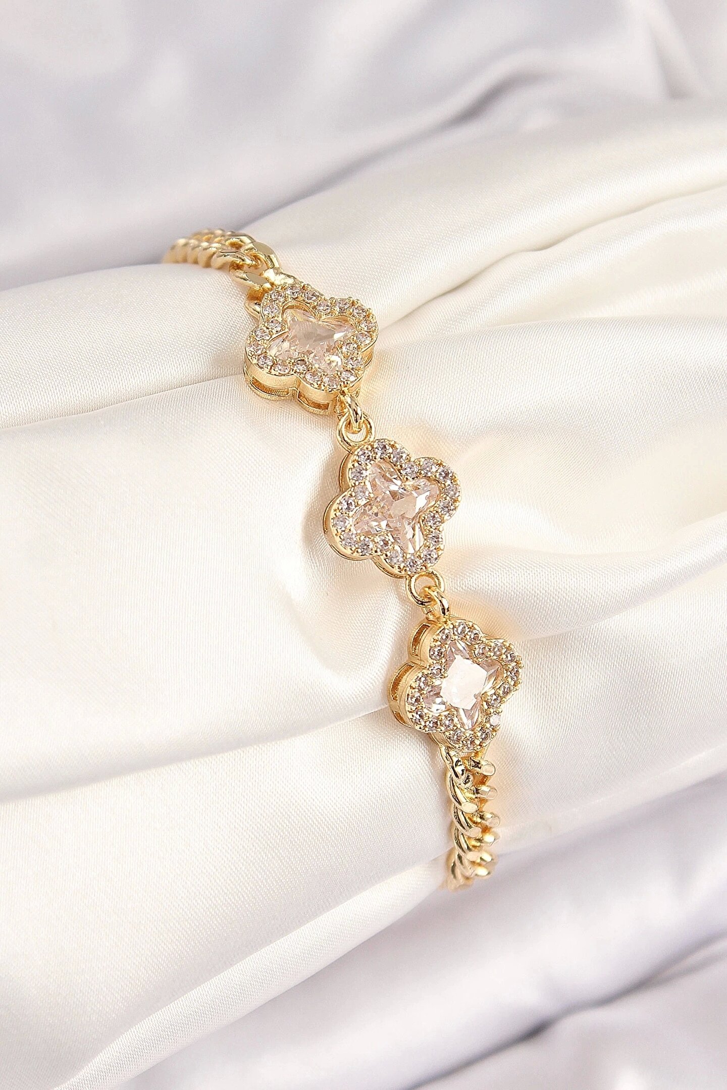 Clariss Pirinç Zirkon Taşlı Yonca Model Gold Renk Kadın Bileklik